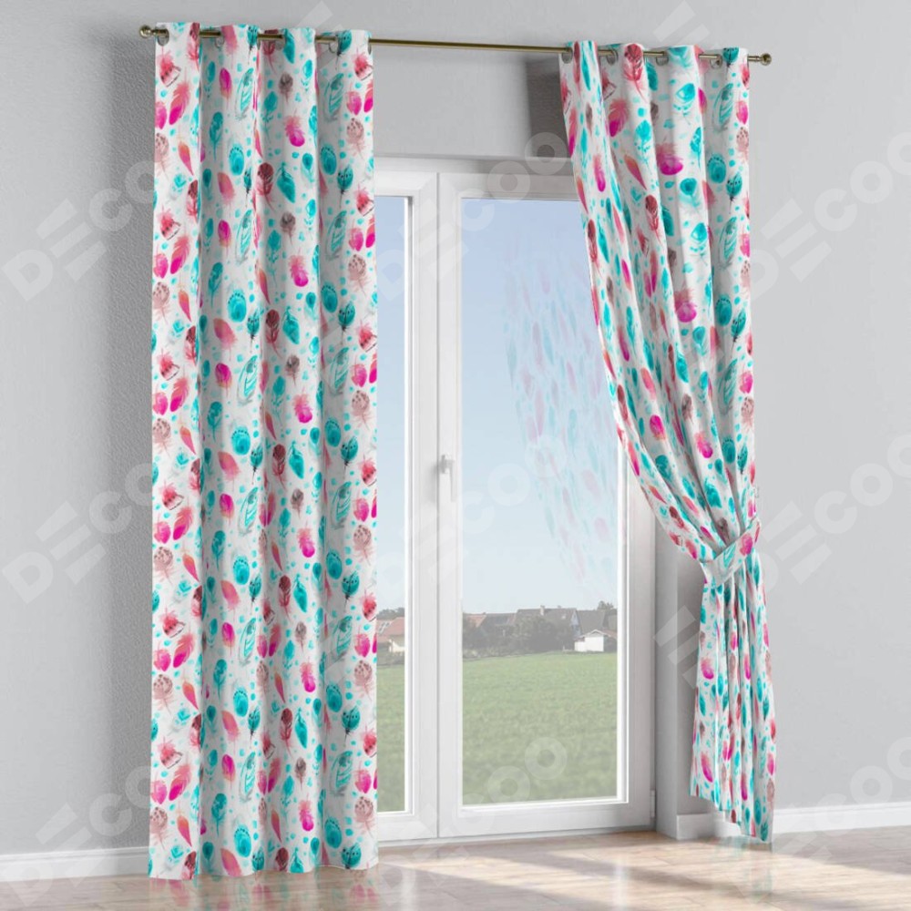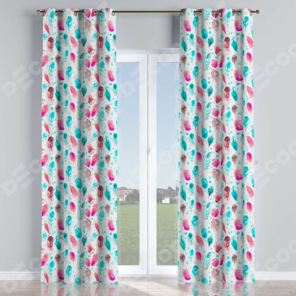 Комплект прямых штор, от производителя «Cortin», пошиты из ткани блэкаут с нанесением сублимационной печати «Перья». Данная модель пошита на люверсах, комплектуется на выбор круглым карнизом и подходит для монтажа на стену или потолок. Прямые шторы на люверсах шьются по стандарту с коэффициентом 1/2 (на 100 см. ширины проёма 200 см. ширины ткани), отличительным преимуществом данной модели является простой способ монтажа. Достаточно повесить ее на трубу и штора готова!