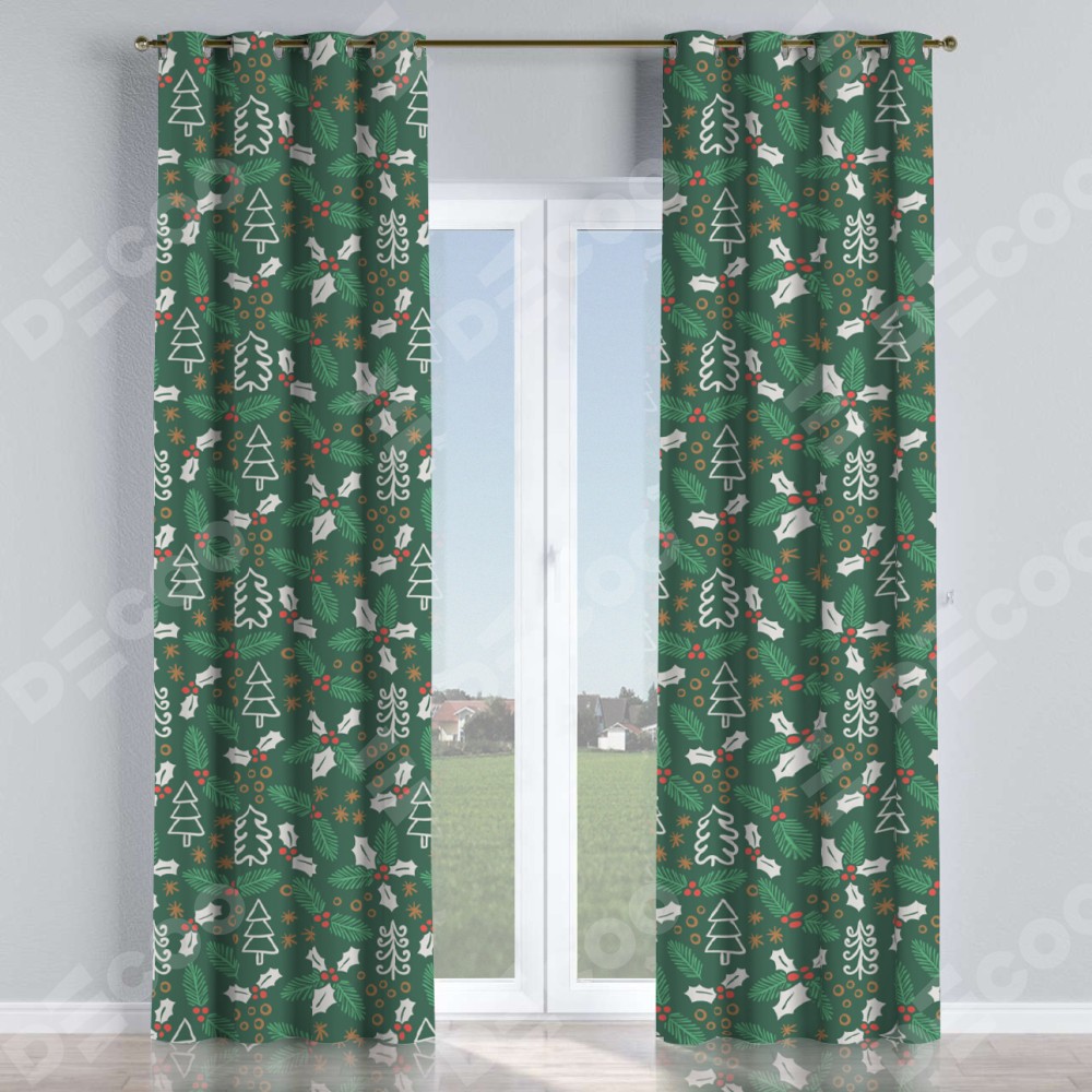 Комплект прямых штор, от производителя «Cortin», пошиты из ткани блэкаут с нанесением сублимационной печати «Рождественский узор». Данная модель пошита на люверсах, комплектуется на выбор круглым карнизом и подходит для монтажа на стену или потолок. Прямые шторы на люверсах шьются по стандарту с коэффициентом 1/2 (на 100 см. ширины проёма 200 см. ширины ткани), отличительным преимуществом данной модели является простой способ монтажа. Достаточно повесить ее на трубу и штора готова!