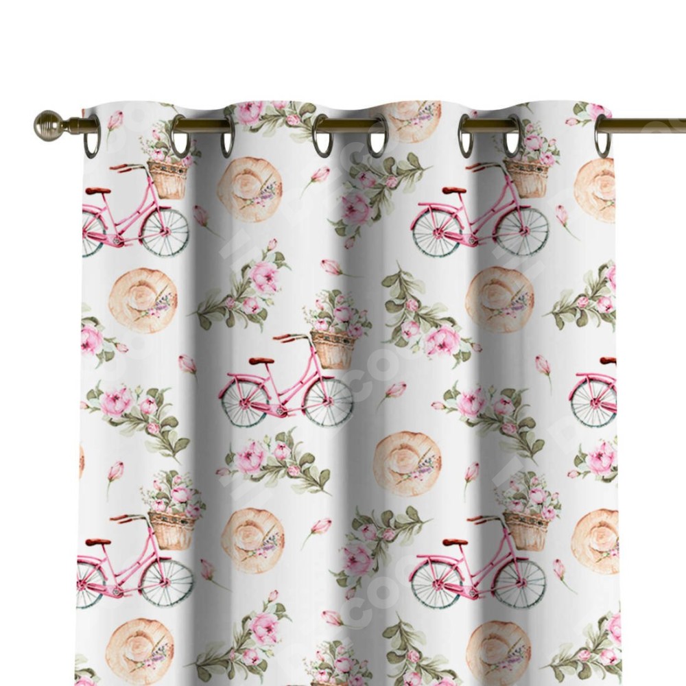 Комплект штор на люверсах «Розовый велосипед» отлично подойдёт для интерьера холл, зал и спальня.