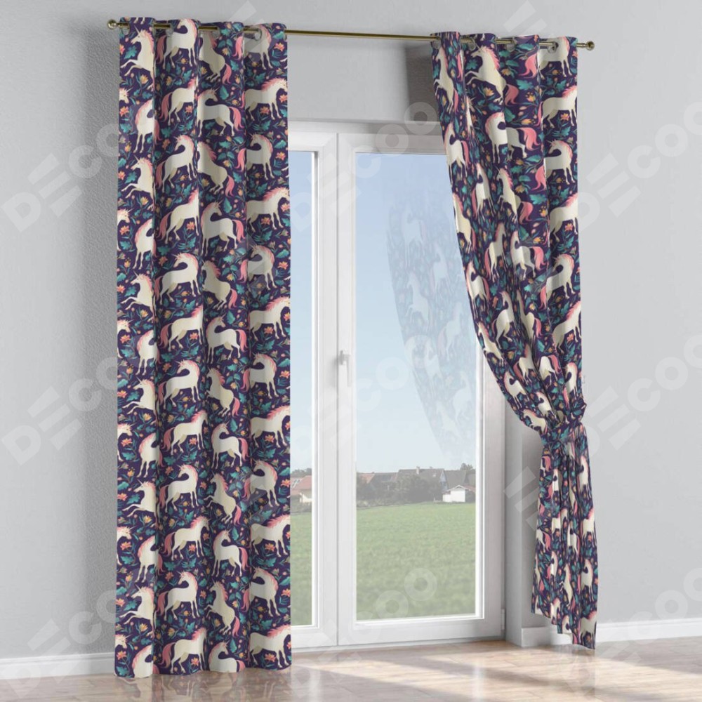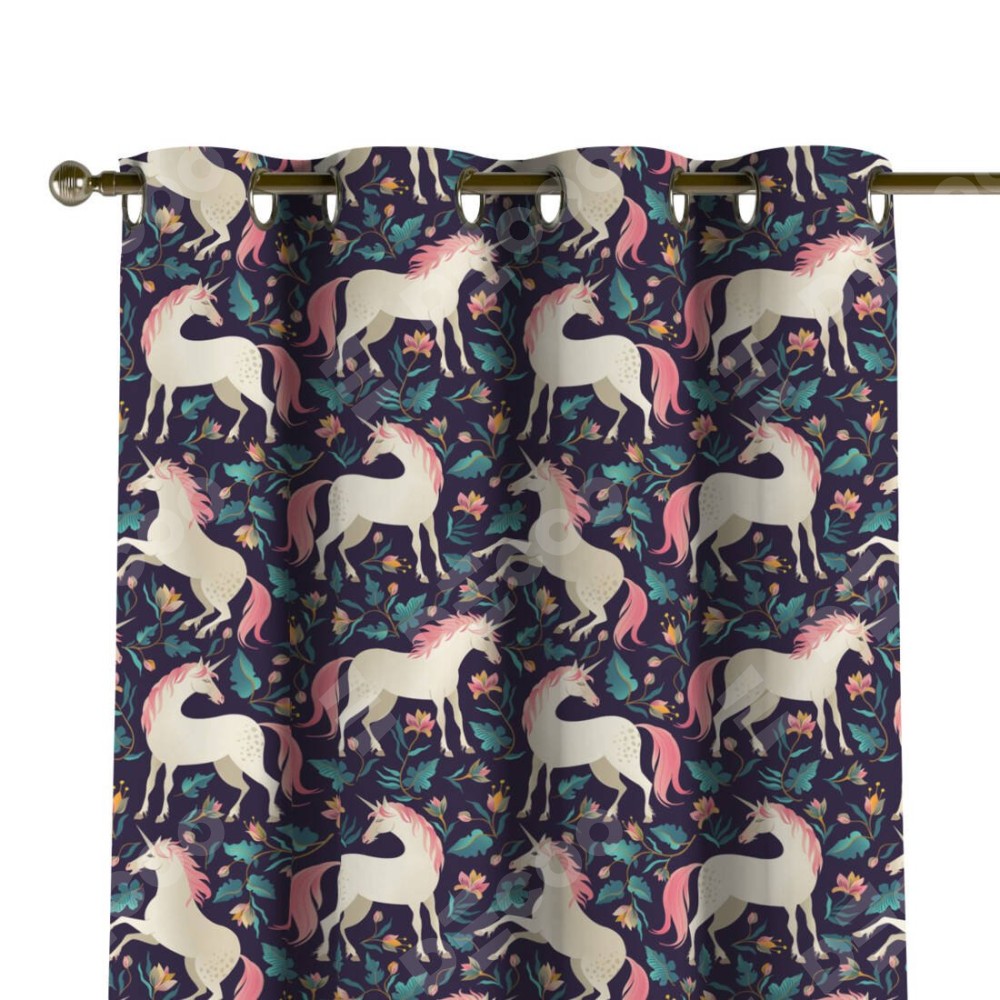 Комплект штор на люверсах «Сказочные единороги» отлично подойдёт для интерьера детская, для комнаты и для девочки.
