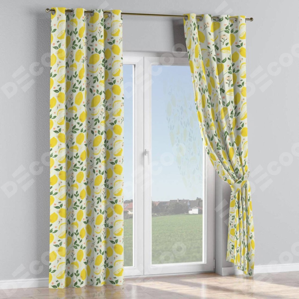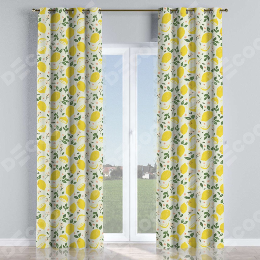 Комплект штор на люверсах «Сочные лимоны» отлично подойдёт для интерьера для комнаты, для дома и для кухни.
