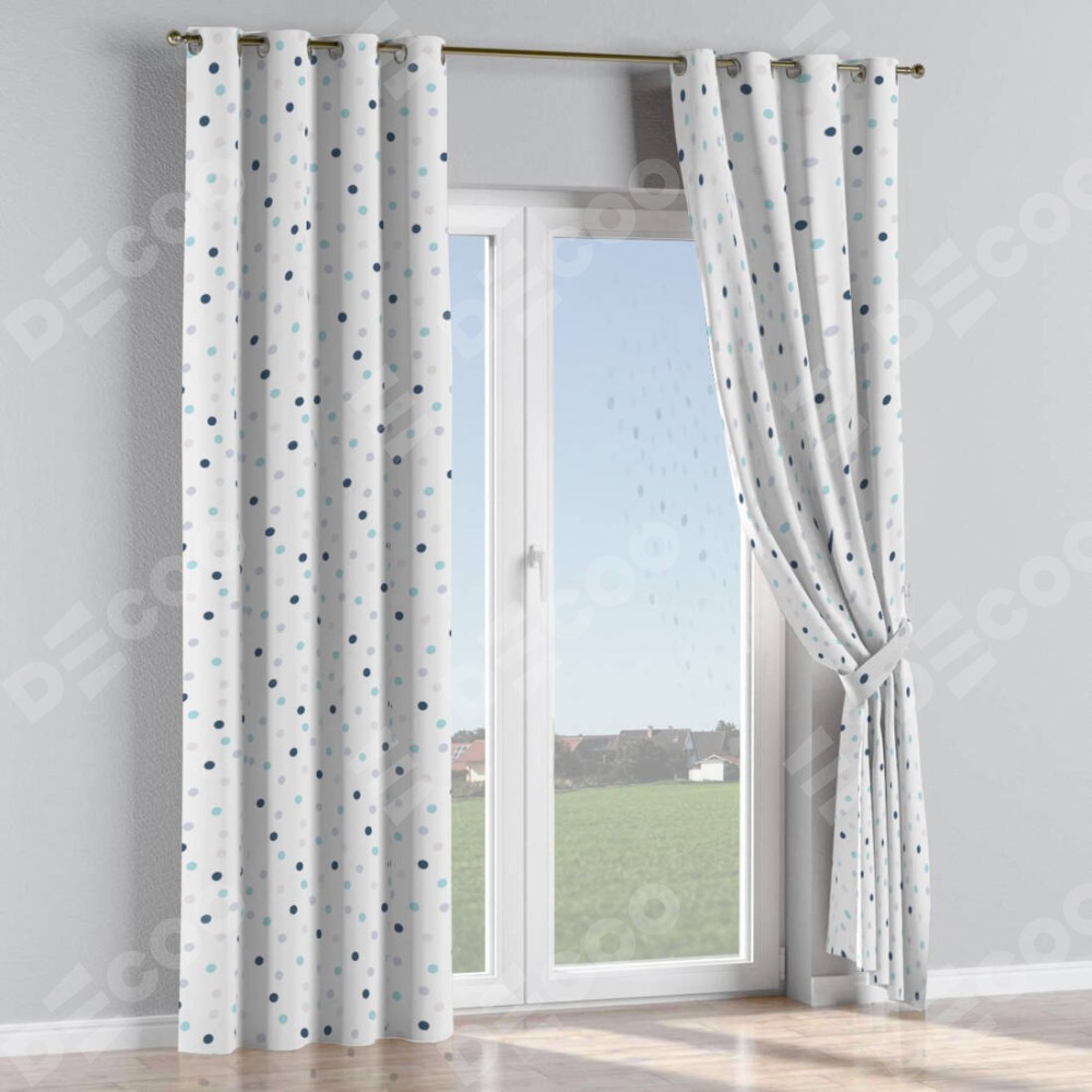 Комплект прямых штор, от производителя «Cortin», пошиты из ткани блэкаут с нанесением сублимационной печати «Точки». Данная модель пошита на люверсах, комплектуется на выбор круглым карнизом и подходит для монтажа на стену или потолок. Прямые шторы на люверсах шьются по стандарту с коэффициентом 1/2 (на 100 см. ширины проёма 200 см. ширины ткани), отличительным преимуществом данной модели является простой способ монтажа. Достаточно повесить ее на трубу и штора готова!