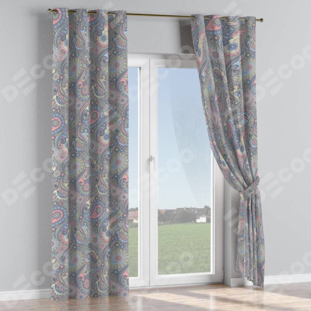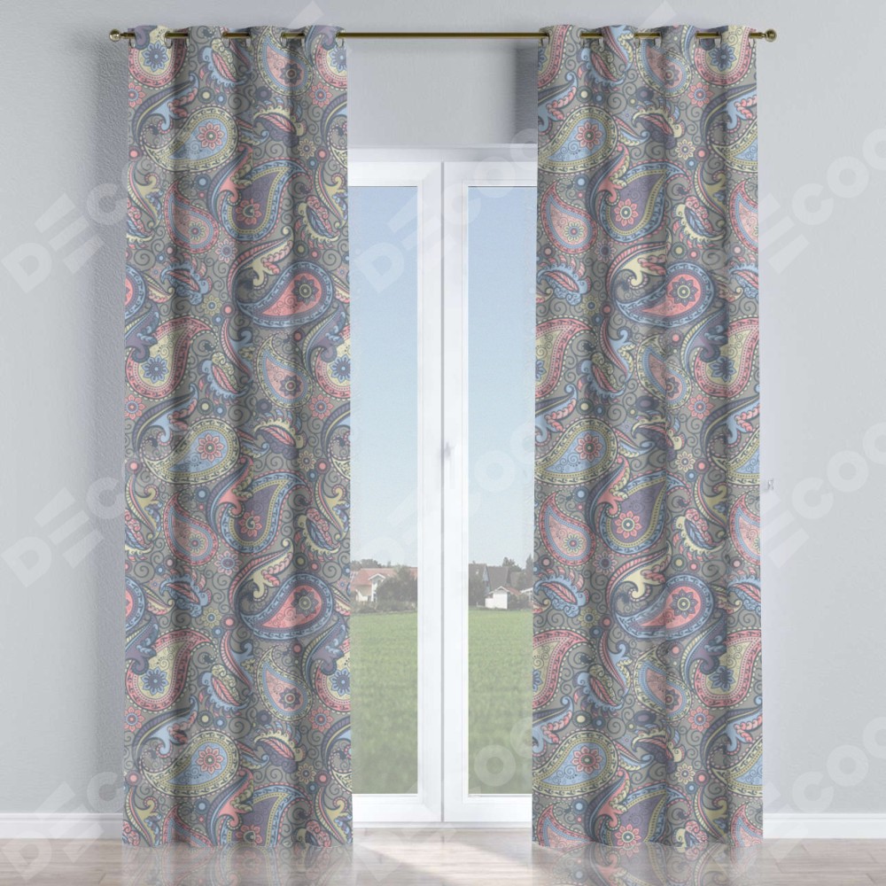 Комплект штор на люверсах «Цветной пейсли» отлично подойдёт для интерьера для коттеджа, загородный дом и спальня.