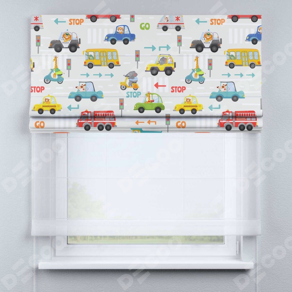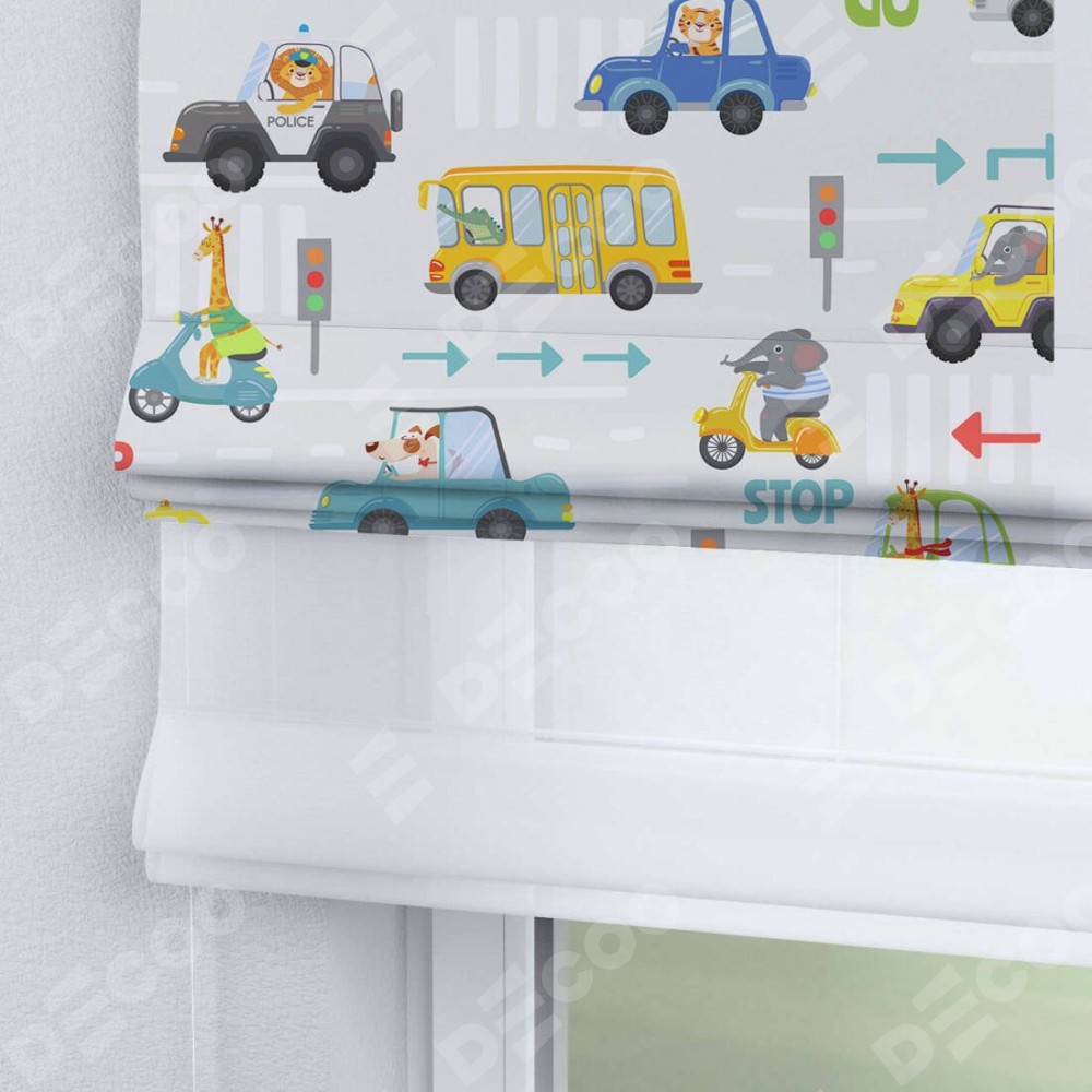 Римская штора «Кортин» день-ночь «Дорожные правила» отлично подойдёт для интерьера: в детскую.