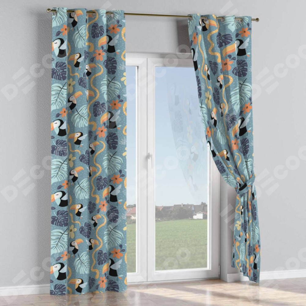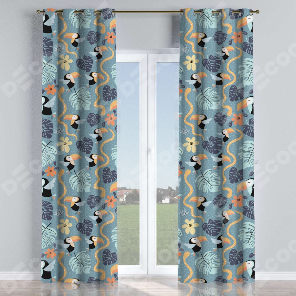 Комплект штор на люверсах «Экзотические птицы» отлично подойдёт для интерьера комнату, для кухни и детская.