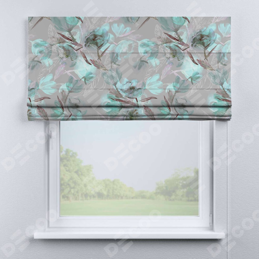 Римская штора производителя «Cortin», используется для проёма, пошита из ткани блэкаут с нанесением сублимационной печати «Цветочная акварель». Имеет универсальный механизм и подходит для монтажа: на потолок, на стену и в нишу.