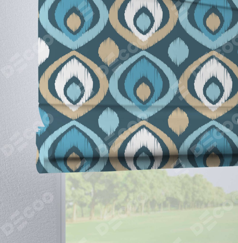 Римская штора «Кортин» на петлях «Икат орнамент»