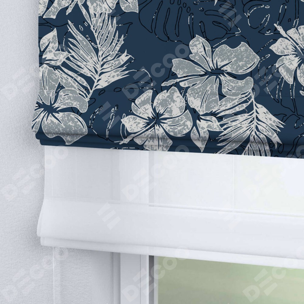 Цвет материала: В цветочек, Синий, С принтом, С рисунком, Тёмные