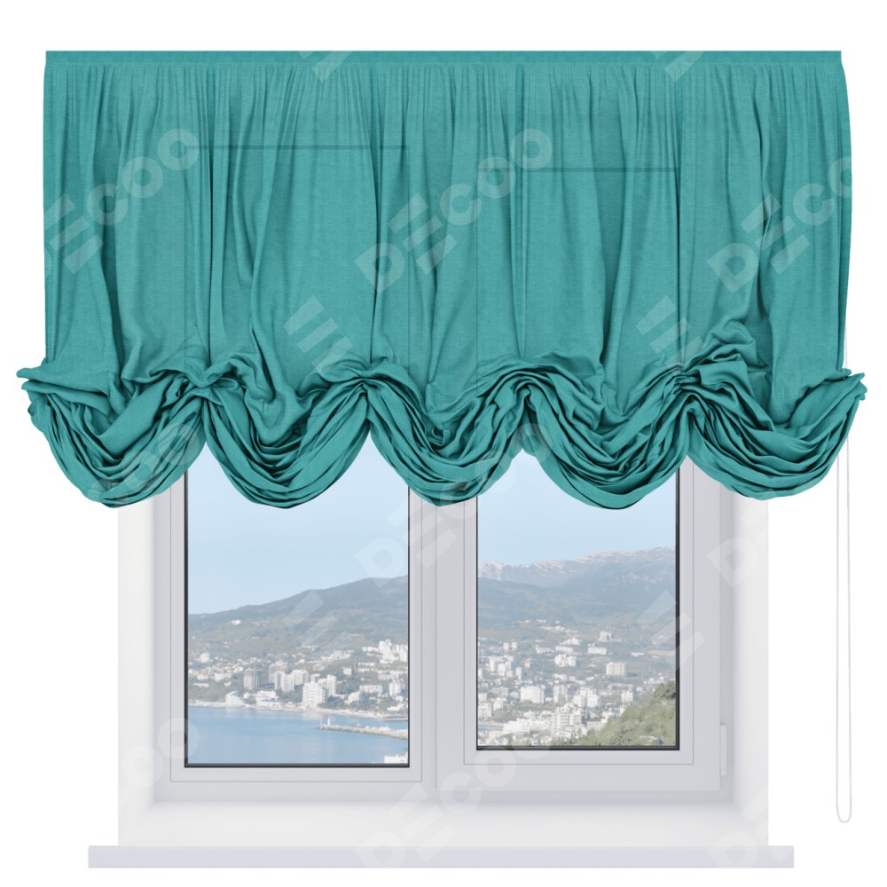 Австрийская штора «Кортин», лён изумрудный