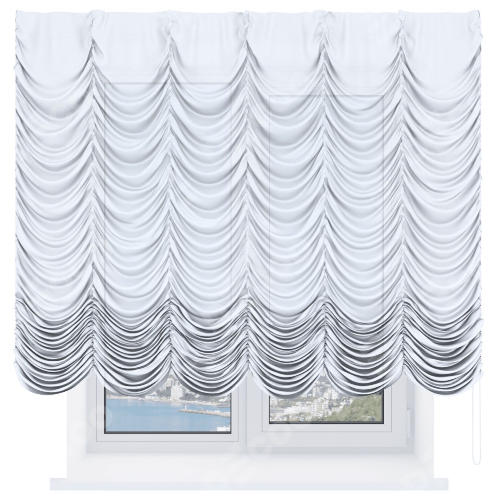 Французская штора производителя «Cortin», используется для проёма, пошита из ткани лён белый, артикул ткани 7439. Имеет универсальный механизм и подходит для монтажа: на потолок и на стену.