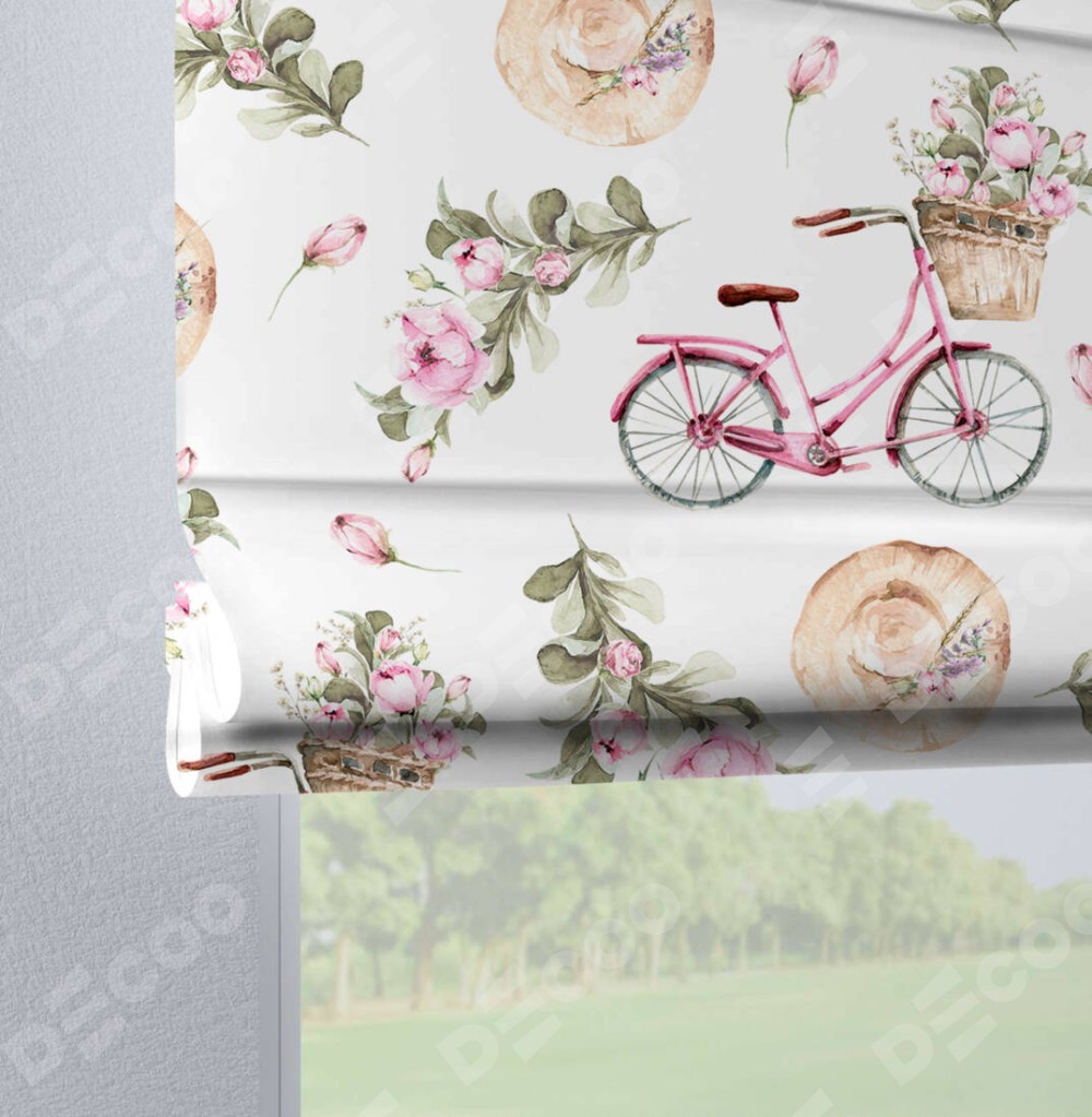 Римская штора «Кортин» на петлях «Розовый велосипед» отлично подойдёт для интерьера: в кухню, на балкон и в спальню.