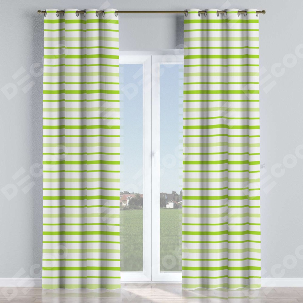Комплект штор на люверсах «Зелёные горизонтальные полоски» отлично подойдёт для интерьера дачи, для коттеджа и столовая.