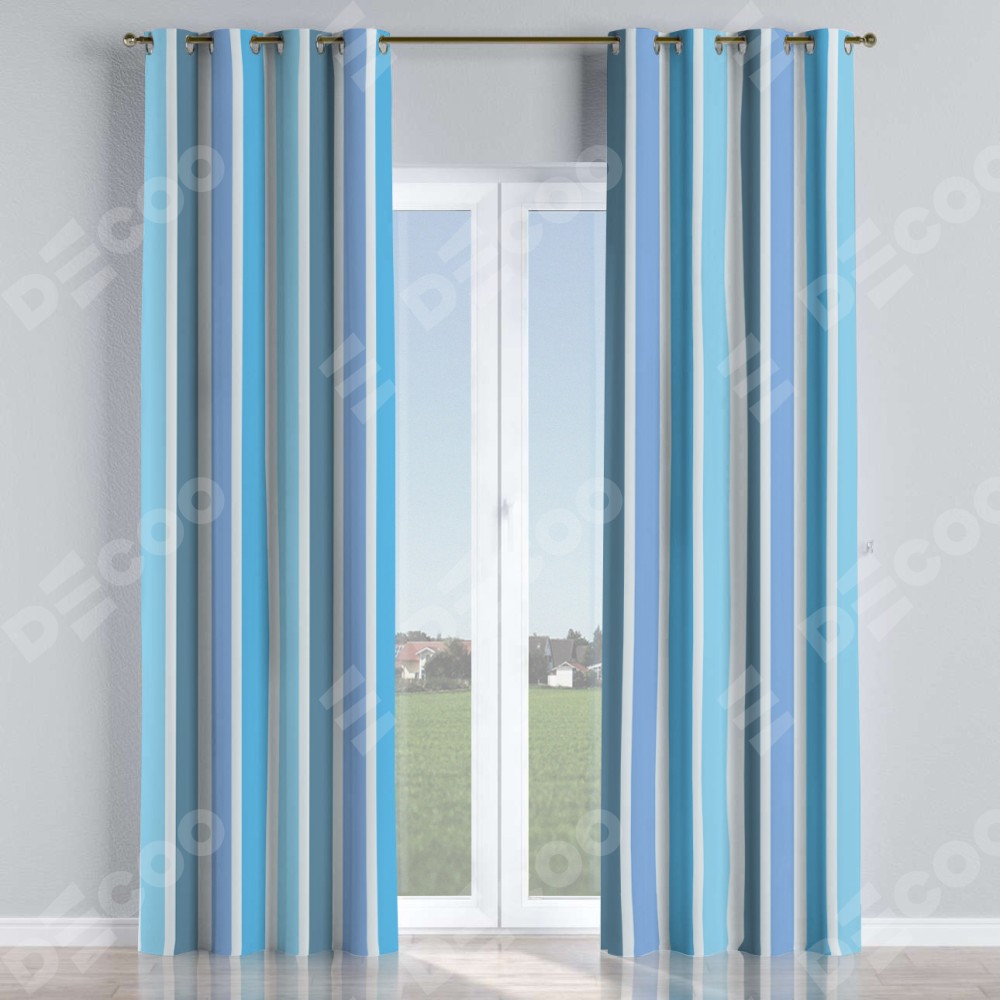 Комплект штор на люверсах «Сине-голубые вертикальные полоски» отлично подойдёт для интерьера дачи, гостиная и для комнаты.