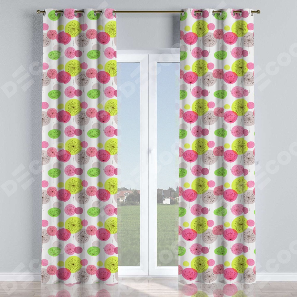 Комплект прямых штор, от производителя «Cortin», пошиты из ткани блэкаут с нанесением сублимационной печати «Цветные одуванчики». Данная модель пошита на люверсах, комплектуется на выбор круглым карнизом и подходит для монтажа на стену или потолок. Прямые шторы на люверсах шьются по стандарту с коэффициентом 1/2 (на 100 см. ширины проёма 200 см. ширины ткани), отличительным преимуществом данной модели является простой способ монтажа. Достаточно повесить ее на трубу и штора готова!