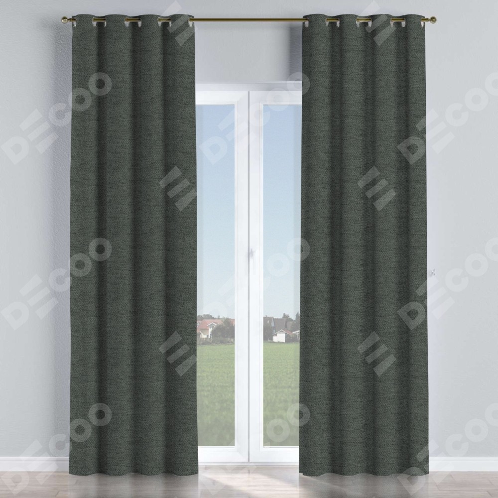 Комплект прямых штор, от производителя «Cortin», пошиты из ткани стиф димаут графит, артикул ткани 44026. Данная модель пошита на люверсах, комплектуется на выбор круглым карнизом и подходит для монтажа на стену или потолок. Прямые шторы на люверсах шьются по стандарту с коэффициентом 1/2 (на 100 см. ширины проёма 200 см. ширины ткани), отличительным преимуществом данной модели является простой способ монтажа. Достаточно повесить ее на трубу и штора готова!