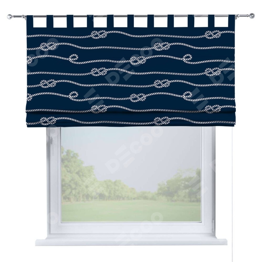 Римская штора производителя «Cortin», используется для проёма, пошита из ткани блэкаут с нанесением сублимационной печати «Морской узел». Данная модель пошита на петлях, комплектуется на выбор круглым карнизом и подходит для монтажа на стену. Римская штора на петлях имеет простую систему регулировки высоты, отличительным преимуществом данной модели является простой способ монтажа. Достаточно повесить ее на трубу и штора готова!