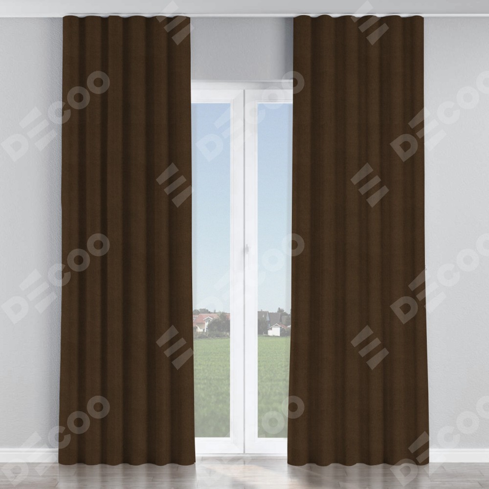Комплект прямых штор, от производителя «Cortin», пошиты из ткани вельвет тёмно-коричневый, артикул ткани 30991. С изнаночной стороны в верхней части штор пристрачивается шторная лента с декоративными складками «Волна». Для создания элегантных складок прямые шторы шьются по стандарту с коэффициентом 1:2 (на 100 см. ширины проёма 200 см. ширины ткани).