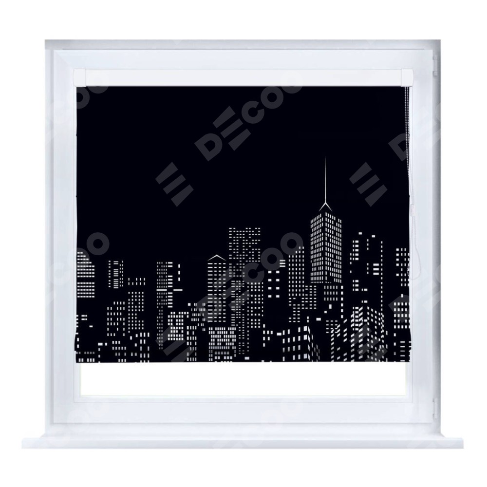 Римская штора «Кортин» на створку «Ночной город» отлично подойдёт для интерьера: в кухню, в офис и подростку в комнату.