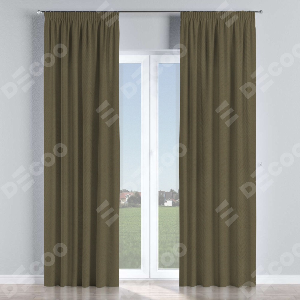 Комплект прямых штор, от производителя «Cortin», пошиты из ткани блэкаут однотонный кофейный, артикул ткани 6668−22. С изнаночной стороны в верхней части штор пристрачивается шторная лента с декоративными складками «Карандаш». Для создания элегантных складок прямые шторы шьются по стандарту с коэффициентом 1:2 (на 100 см. ширины проёма 200 см. ширины ткани).
