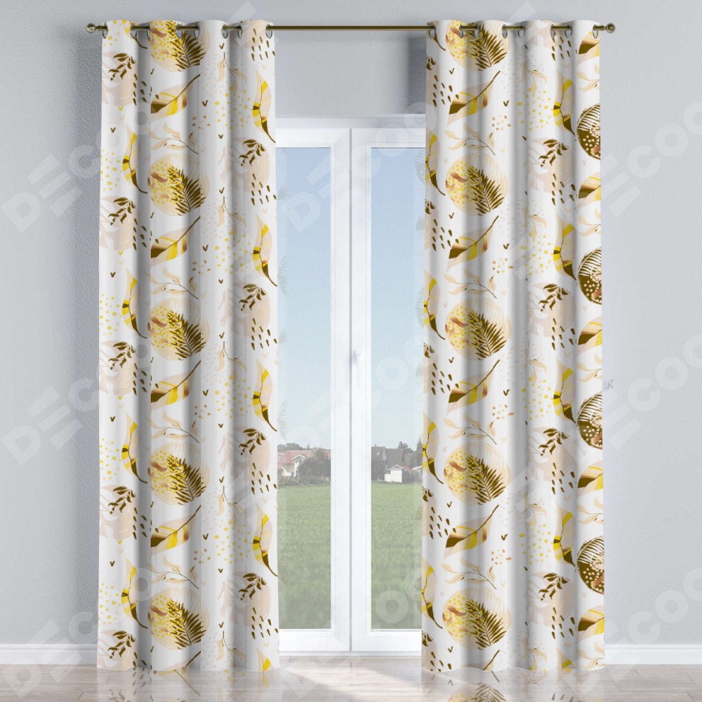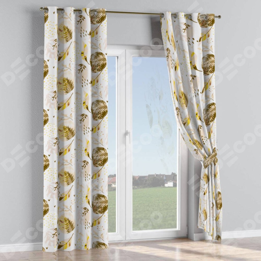 Комплект штор на люверсах «Золотые листья» отлично подойдёт для интерьера комнату, гостиная и спальня.