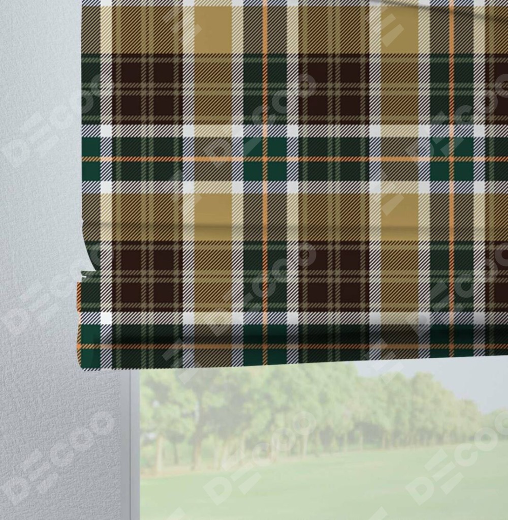 Римская штора на петлях «Бежево-зелёная клетка» отлично подойдёт для интерьера: в спальню, на балкон и в гостиную.