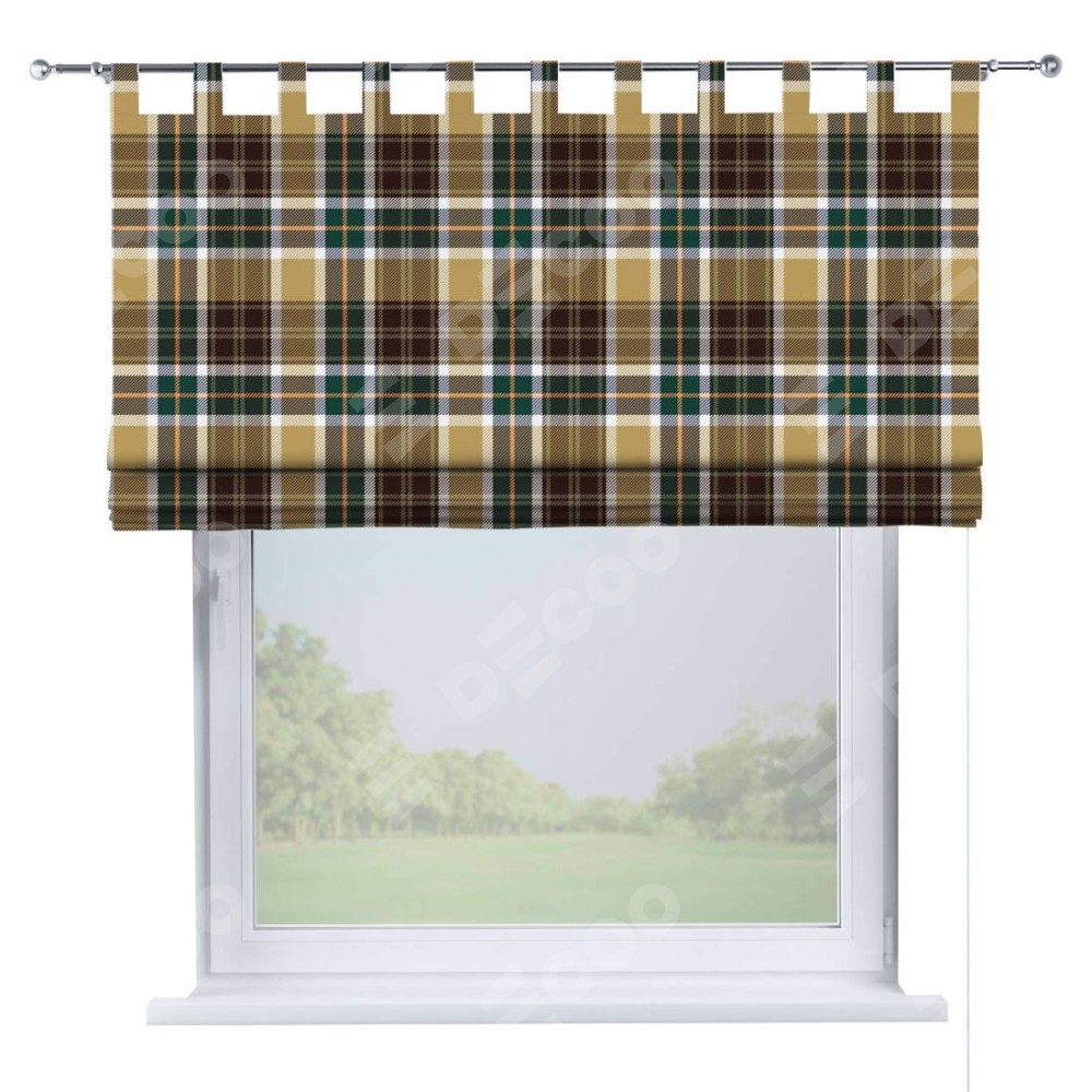 Римская штора на петлях «Бежево-зелёная клетка»
