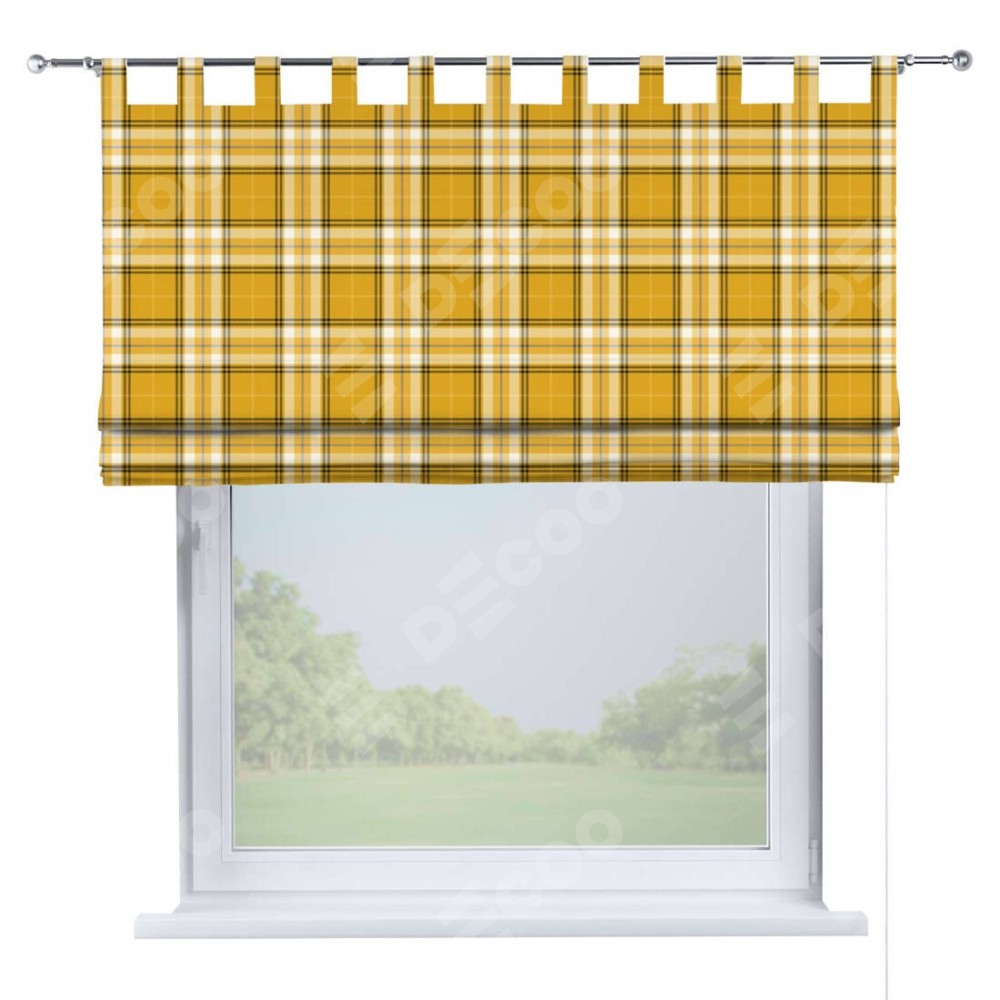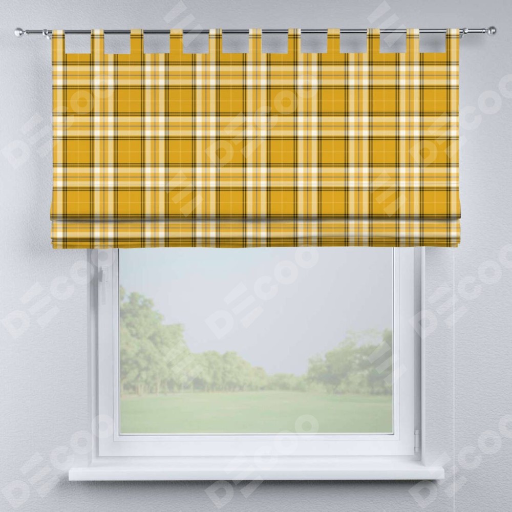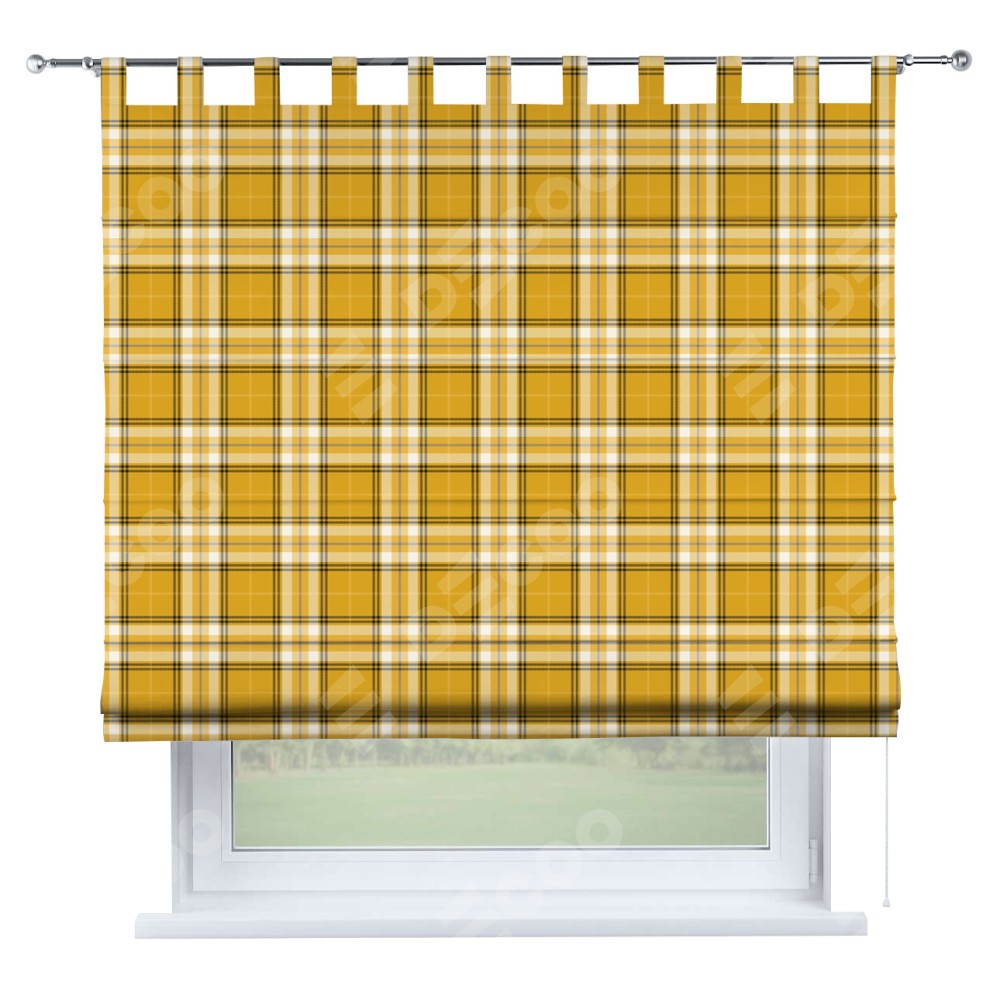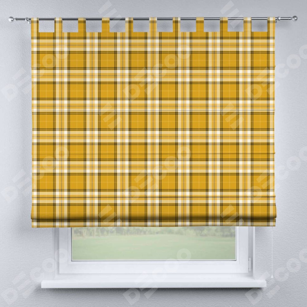 Римская штора на петлях «Желто-горчичная клетка»