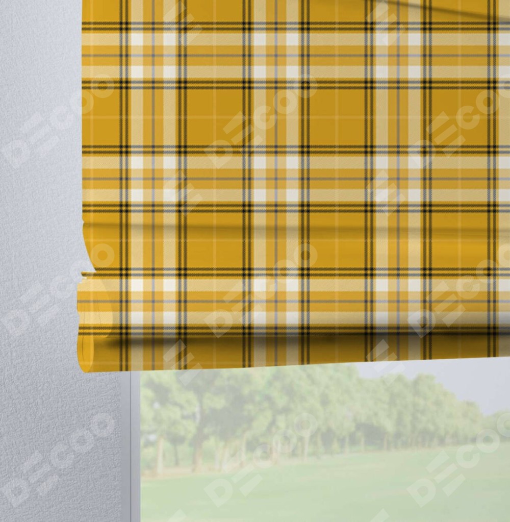 Римская штора на петлях «Желто-горчичная клетка» отлично подойдёт для интерьера: на балкон, в кухню и в гостиную.