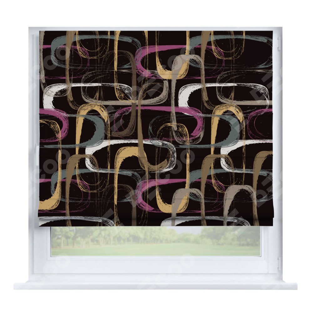Римская штора производителя «Cortin», устанавливается на створку окна, пошита из ткани блэкаут с нанесением сублимационной печати «Тёмная палитра». Штора шьётся по индивидуальным размерам, для данного типа римской шторы возможная ширина от 35 до 150 см., высота до 250 см.