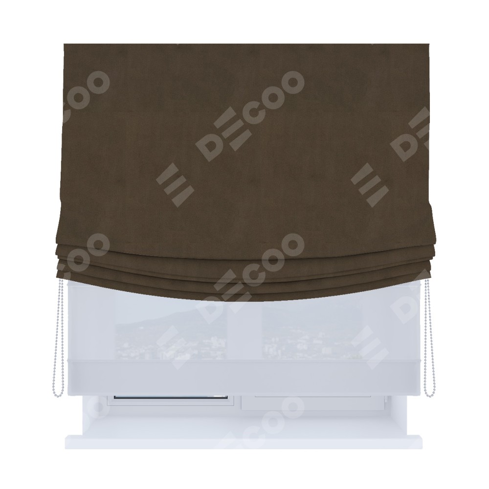 Римская штора «Кортин», день-ночь с мягкими складками, бархат тёмно-коричневый