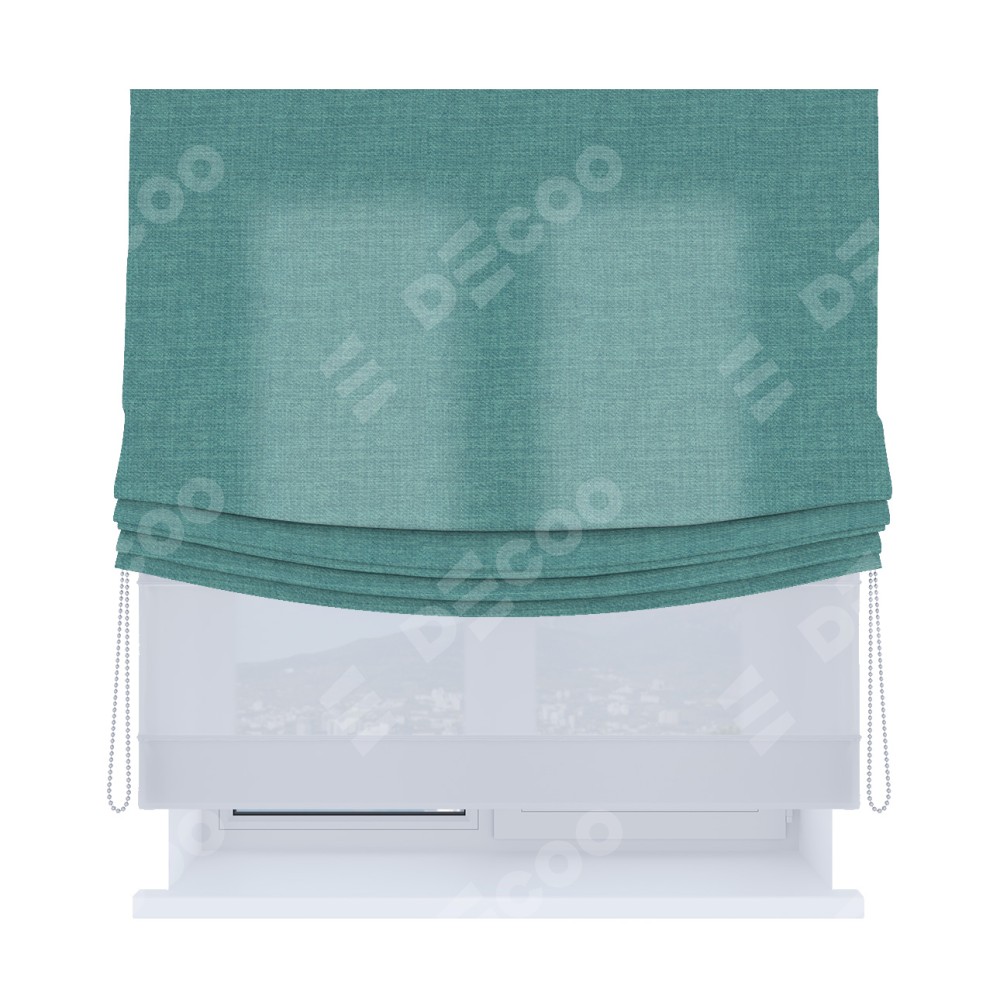 Римская штора «Кортин», день-ночь с мягкими складками, лён бирюза