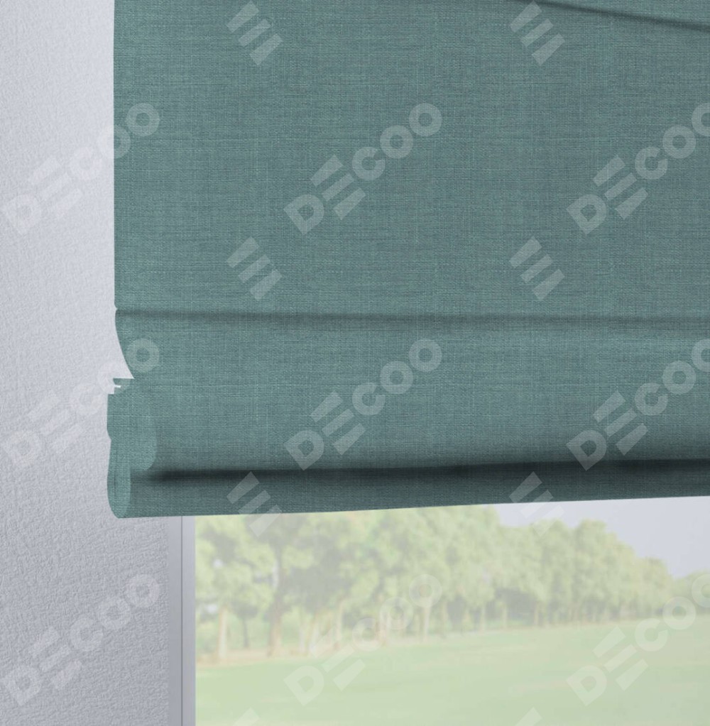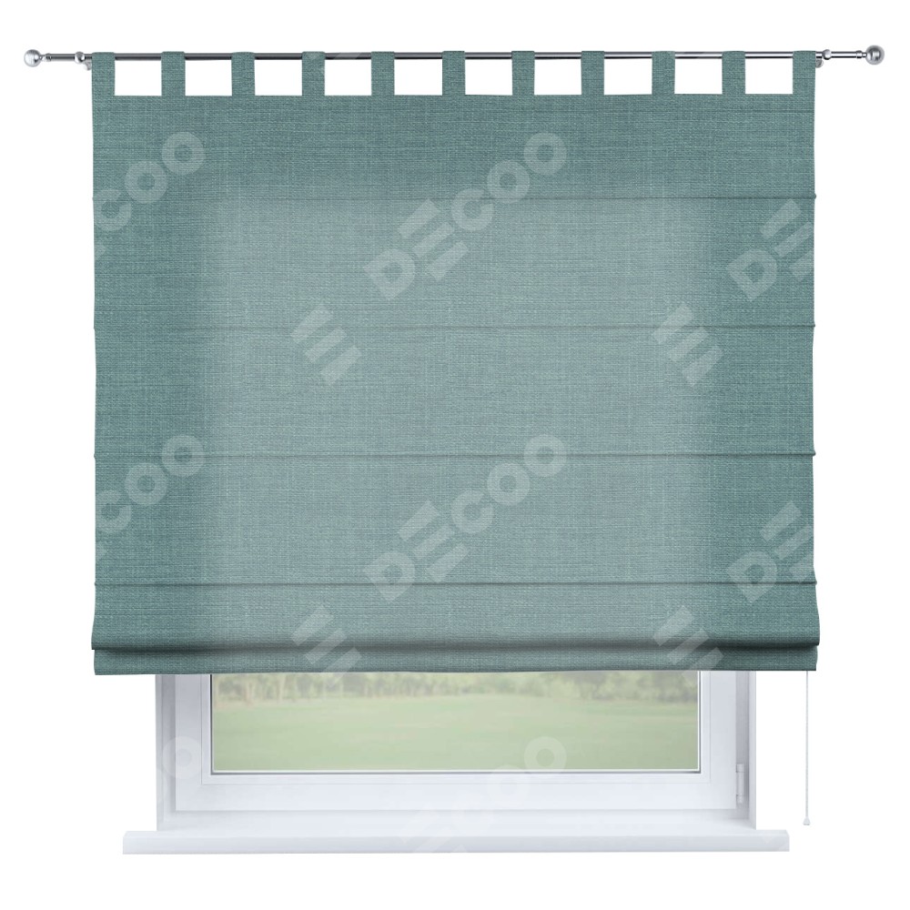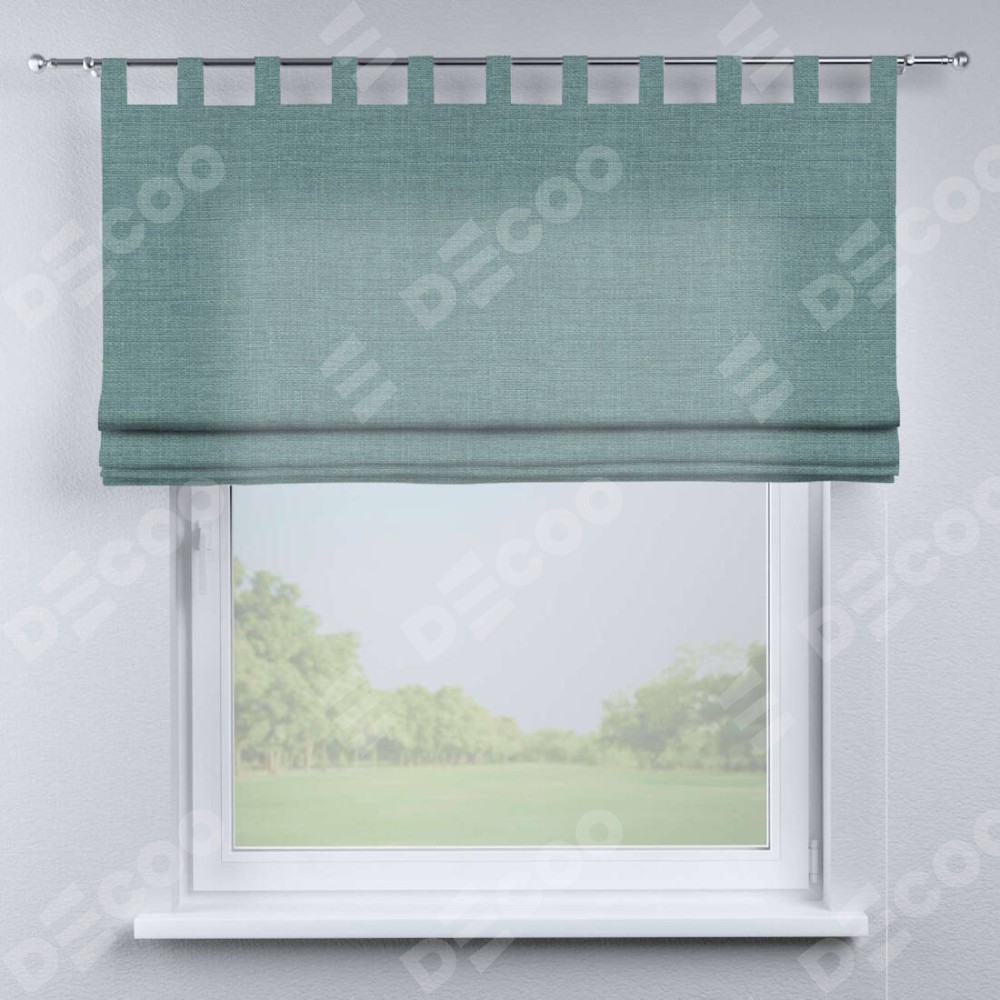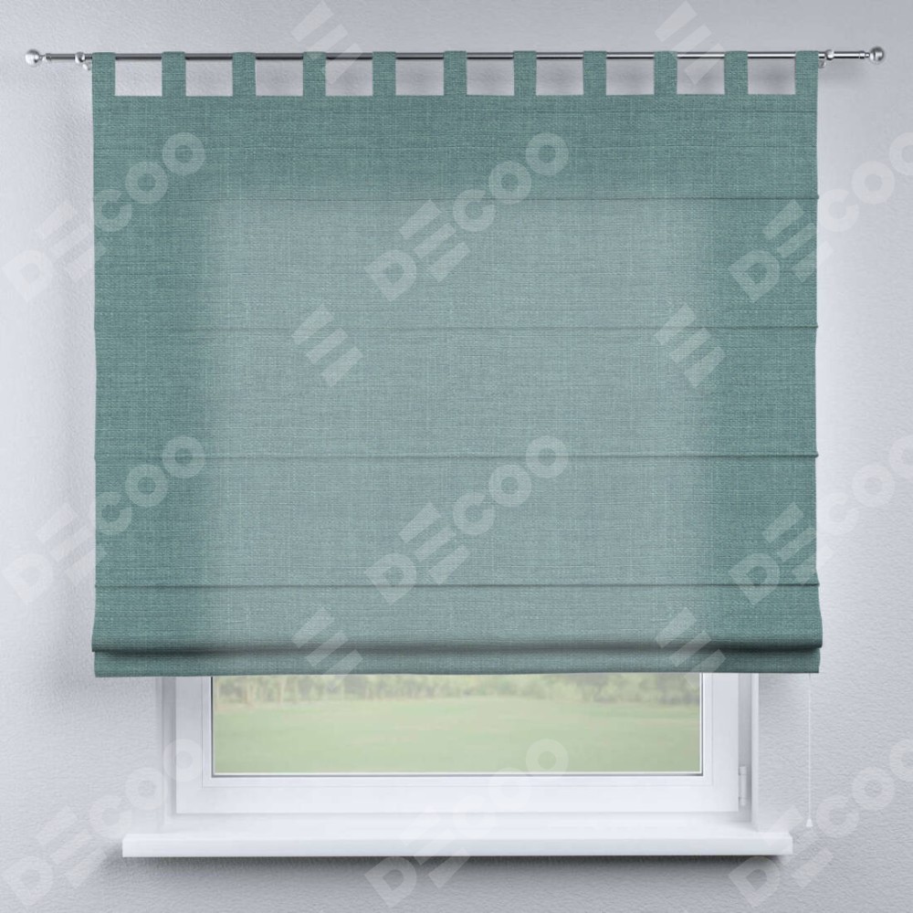 Римская штора на петлях «Кортин», выполнена в ткани лён голубой