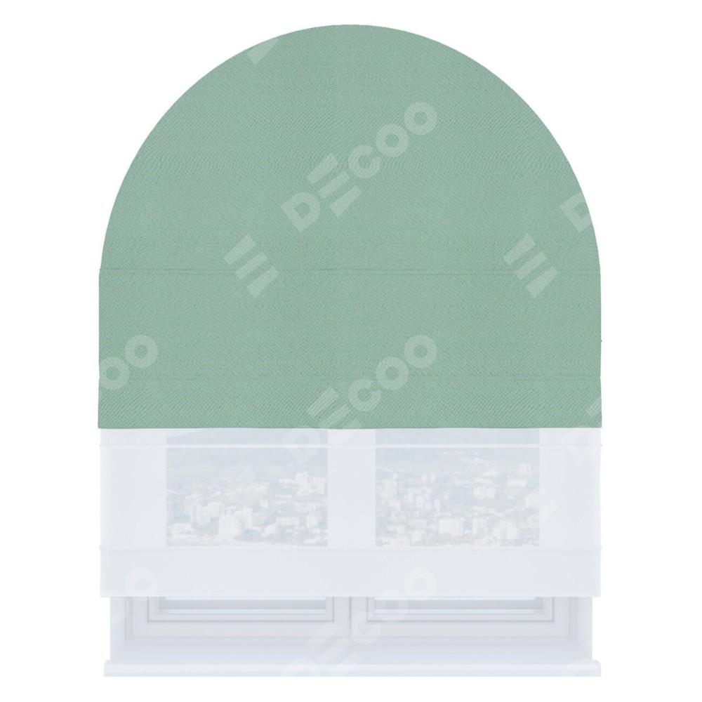 Римская штора день-ночь производителя «Cortin», используется для арочного проёма, пошита из двух полотен, с лицевой стороны блэкаут однотонный ментоловый артикул 29584, вторая ткань тюль (по стандарту комплектуется тюль белого цвета артикул V-01). Штора шьётся по индивидуальным размерам, для данного типа римской шторы возможная ширина от 60 до 300 см. Удобное управление каждой шторой отдельно.