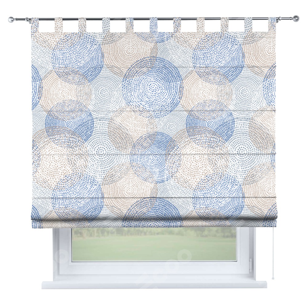 Римская штора производителя «Cortin», используется для проёма, пошита из ткани блэкаут с нанесением сублимационной печати «Абстрактные круги». Данная модель пошита на петлях, комплектуется на выбор круглым карнизом и подходит для монтажа на стену. Римская штора на петлях имеет простую систему регулировки высоты, отличительным преимуществом данной модели является простой способ монтажа. Достаточно повесить ее на трубу и штора готова!