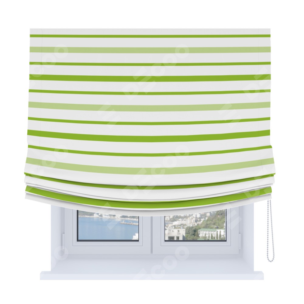 Римская штора Soft с мягкими складками, «Зелёные горизонтальные полоски»