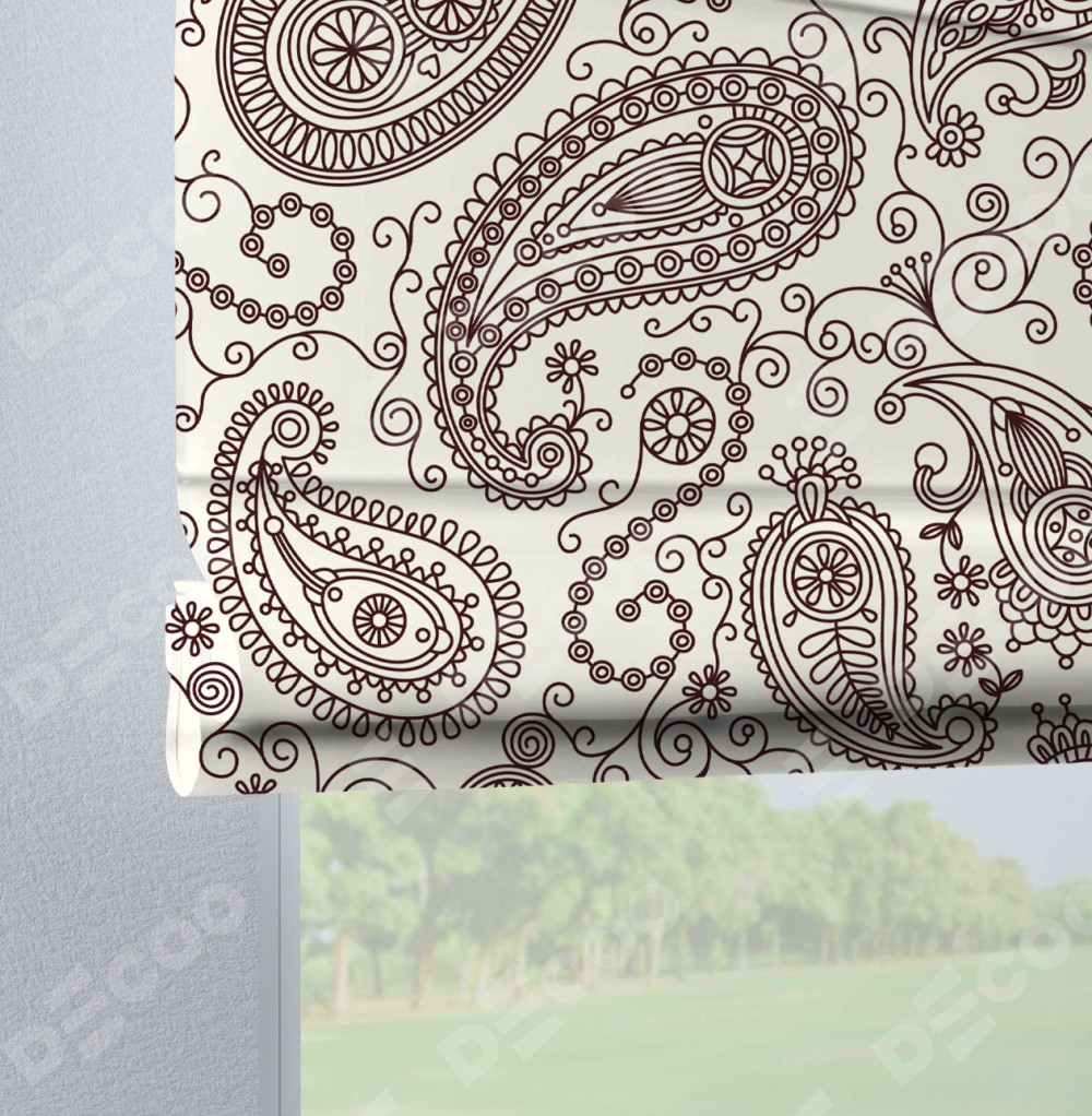 Римская штора производителя «Cortin», используется для проёма, пошита из ткани блэкаут с нанесением сублимационной печати «Индийский узор». Данная модель пошита на петлях, комплектуется на выбор круглым карнизом и подходит для монтажа на стену. Римская штора на петлях имеет простую систему регулировки высоты, отличительным преимуществом данной модели является простой способ монтажа. Достаточно повесить ее на трубу и штора готова!