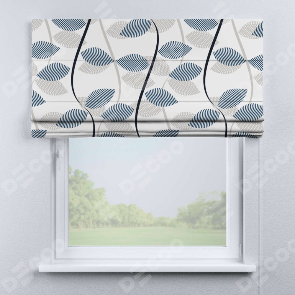 Римская штора «Кортин» для проема «Резные листья» отлично подойдёт для интерьера: в гостиную, в кухню и на балкон.