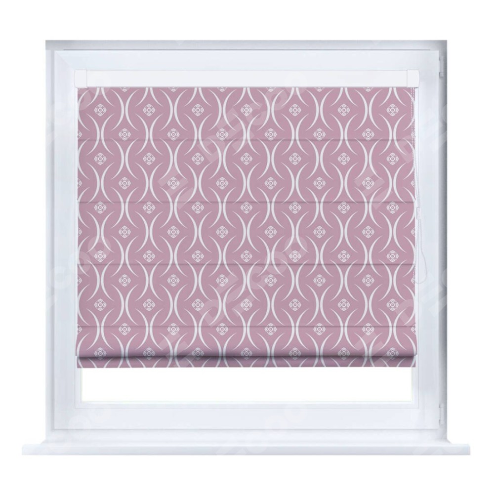 Римская штора производителя «Cortin», устанавливается на створку окна, пошита из ткани блэкаут с нанесением сублимационной печати «Воздушный узор розовый». Штора шьётся по индивидуальным размерам, для данного типа римской шторы возможная ширина от 35 до 150 см., высота до 250 см.