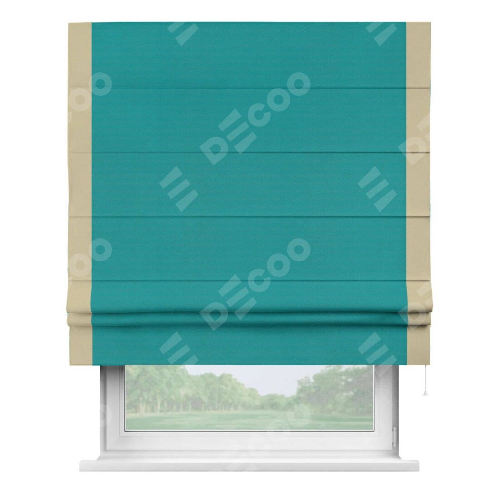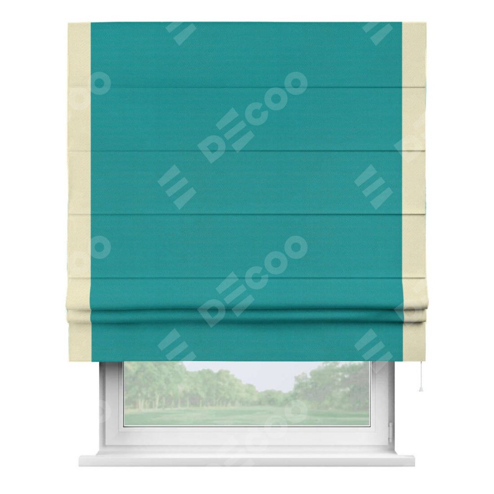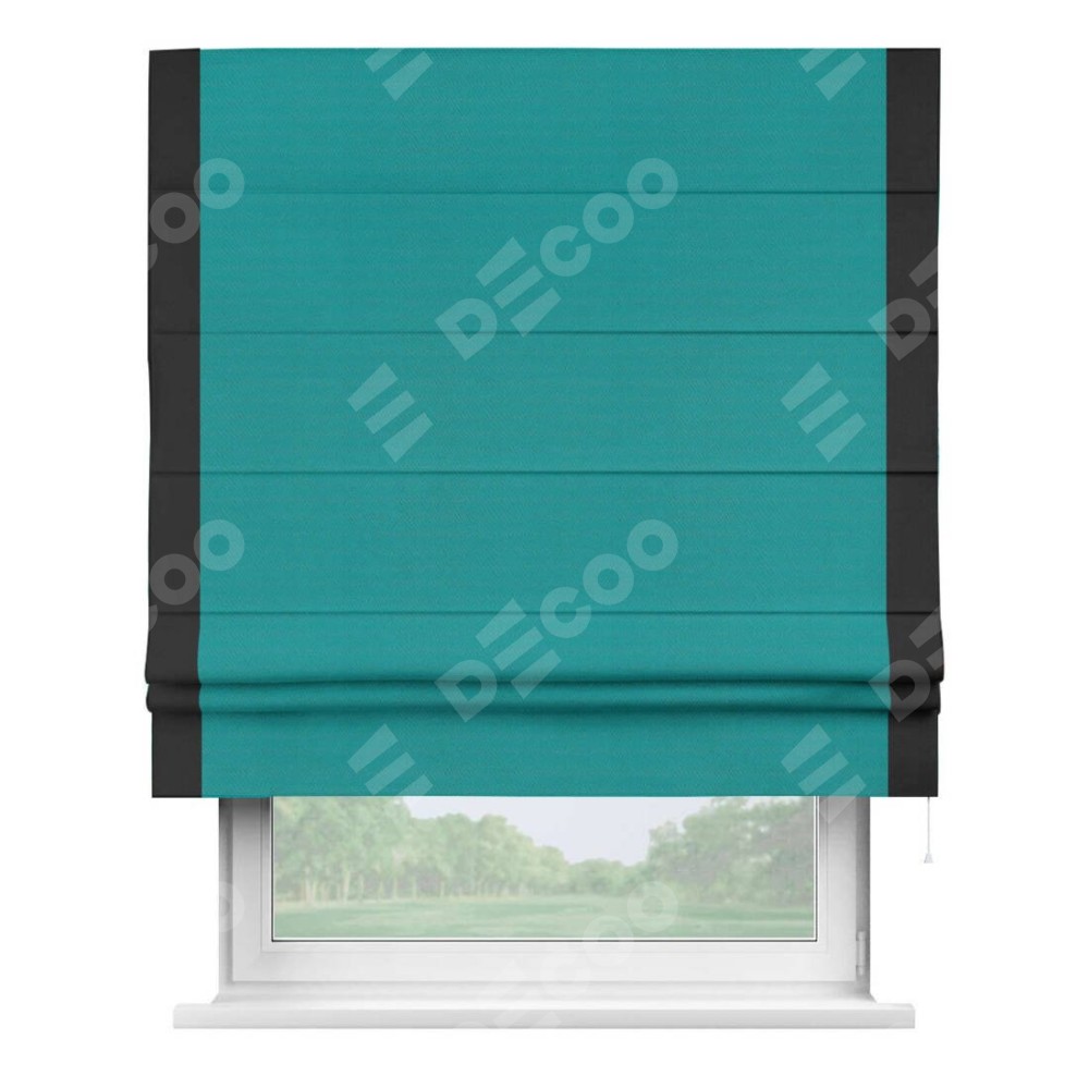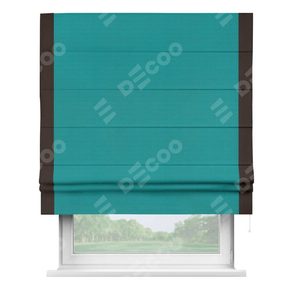 Римская штора «Кортин» с кантом Стрим Дуо, для проема, ткань блэкаут однотонный бирюзовый