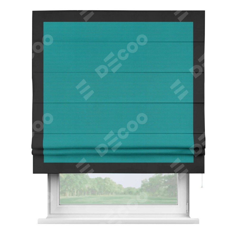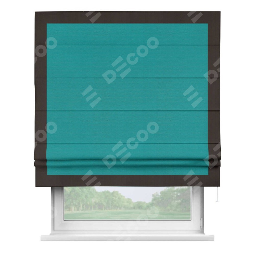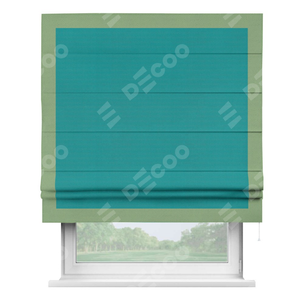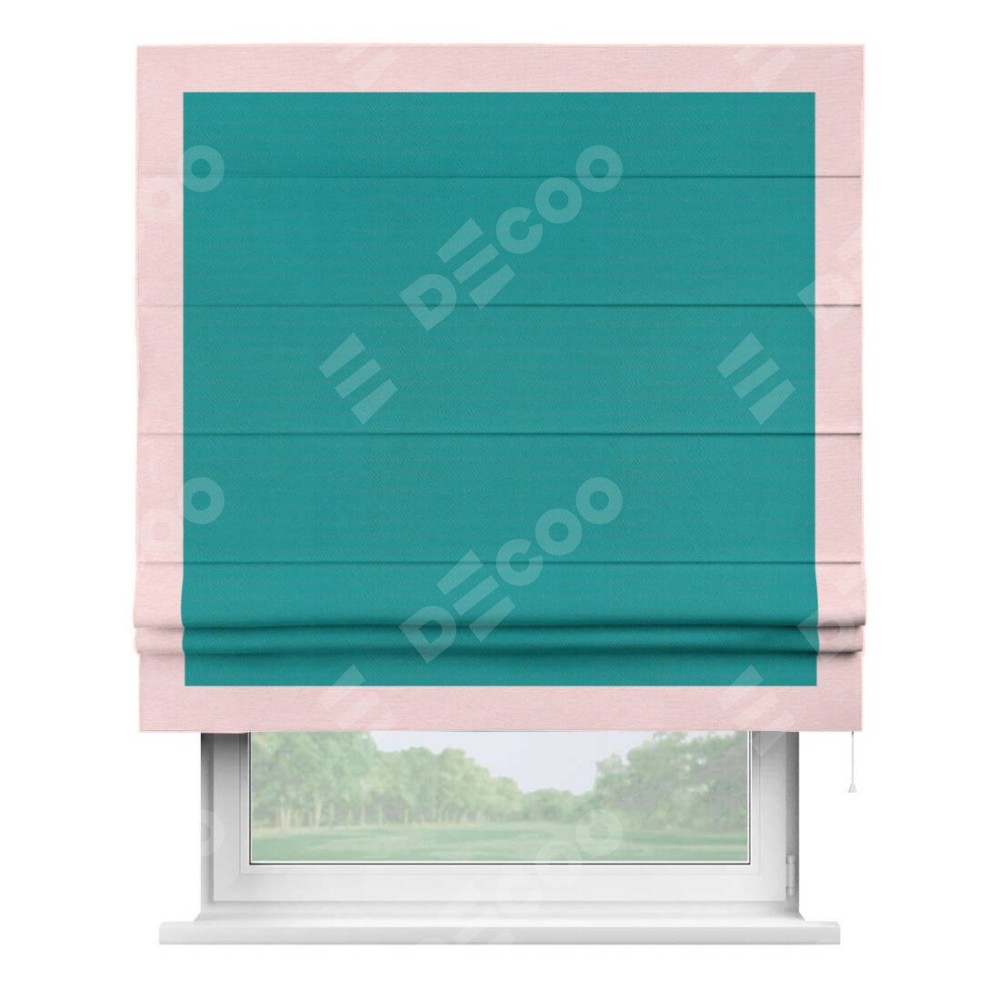 Римская штора «Кортин» с кантом Чесс, для проема, ткань блэкаут однотонный бирюзовый