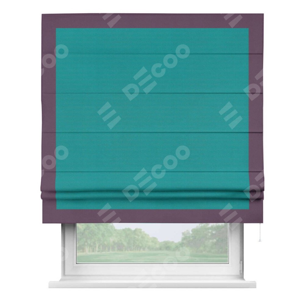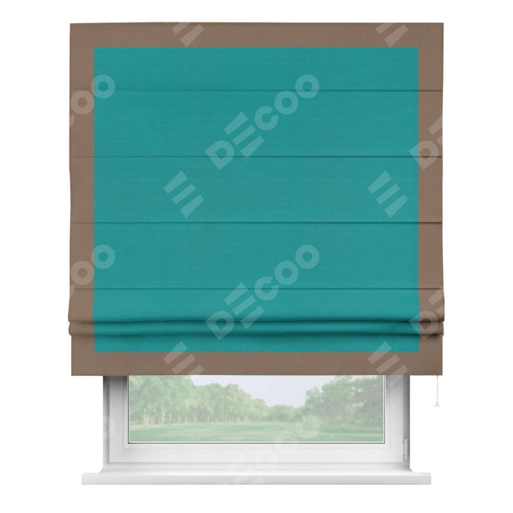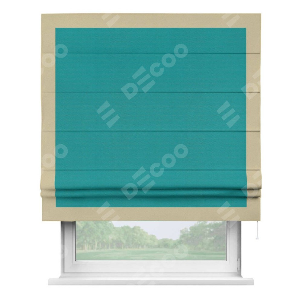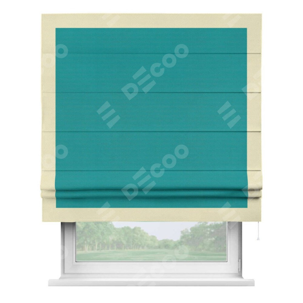 Римская штора «Кортин» с кантом Чесс, для проема, ткань блэкаут однотонный бирюзовый
