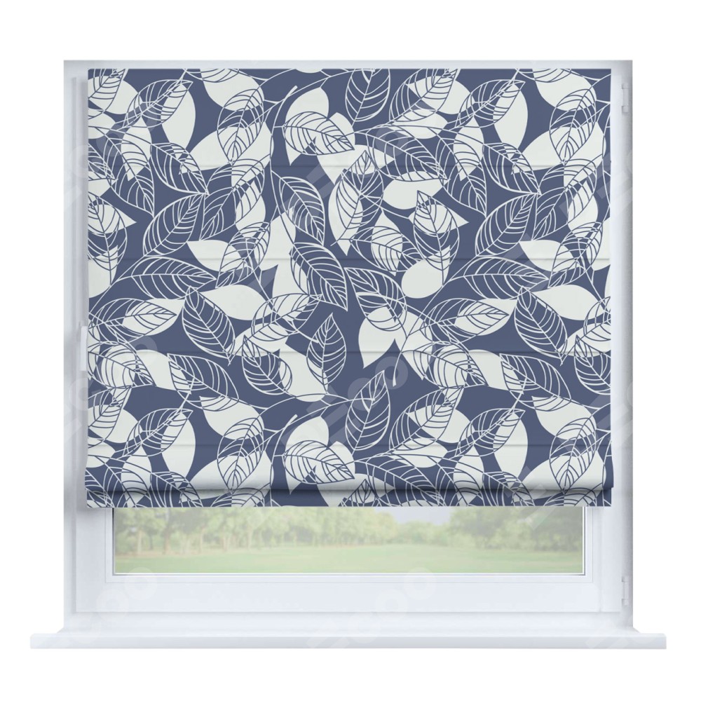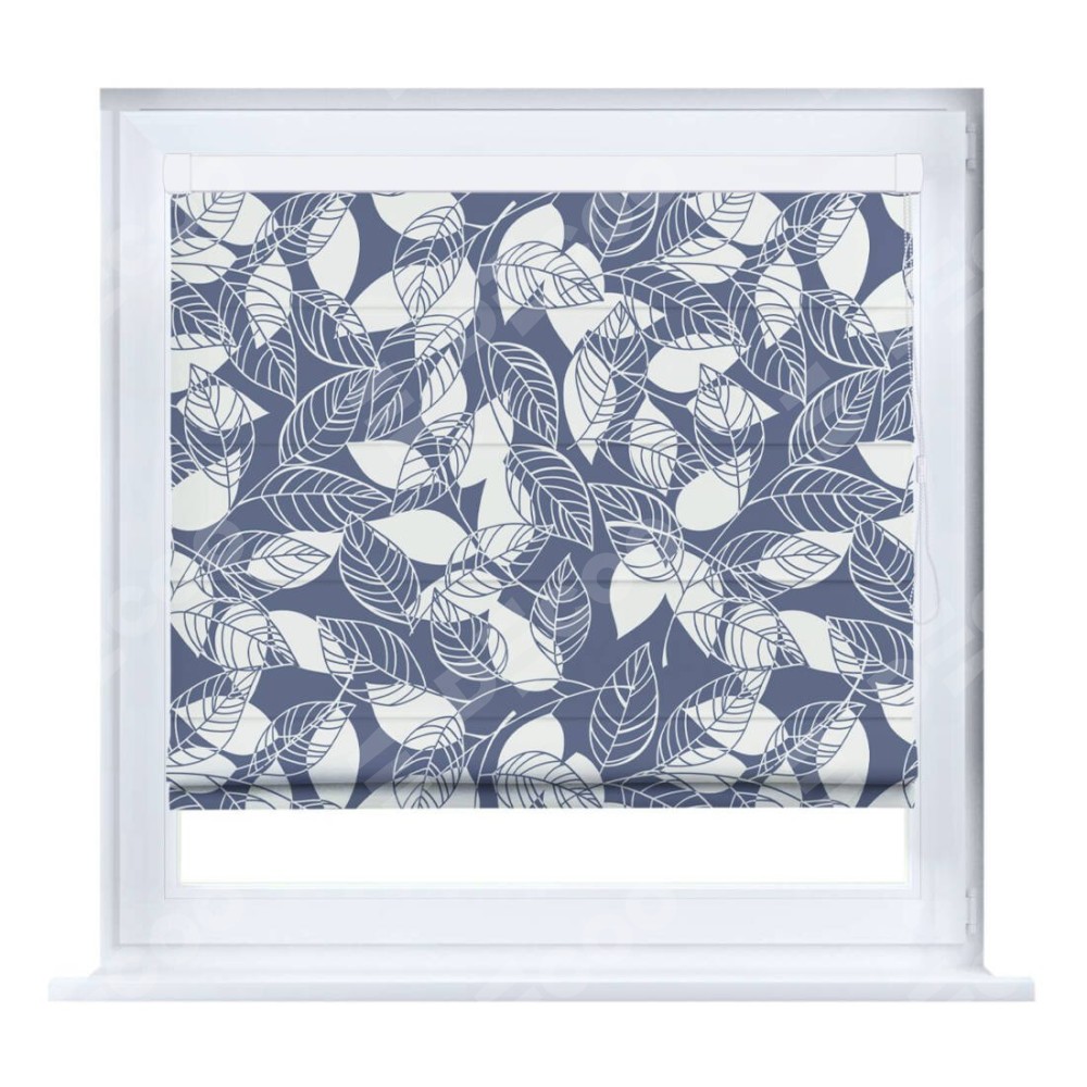 Римская штора производителя «Cortin», устанавливается на створку окна, пошита из ткани блэкаут с нанесением сублимационной печати «Прозрачные листья». Штора шьётся по индивидуальным размерам, для данного типа римской шторы возможная ширина от 35 до 150 см., высота до 250 см.