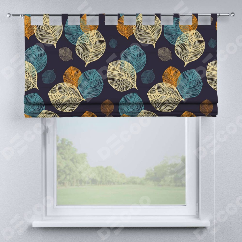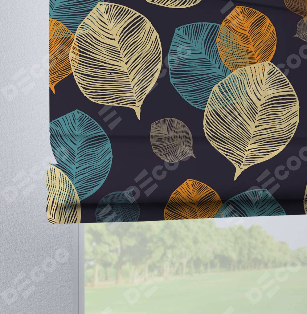 Римская штора на петлях «Листья в ночи» отлично подойдёт для интерьера: в гостиную, в спальню и в кухню.