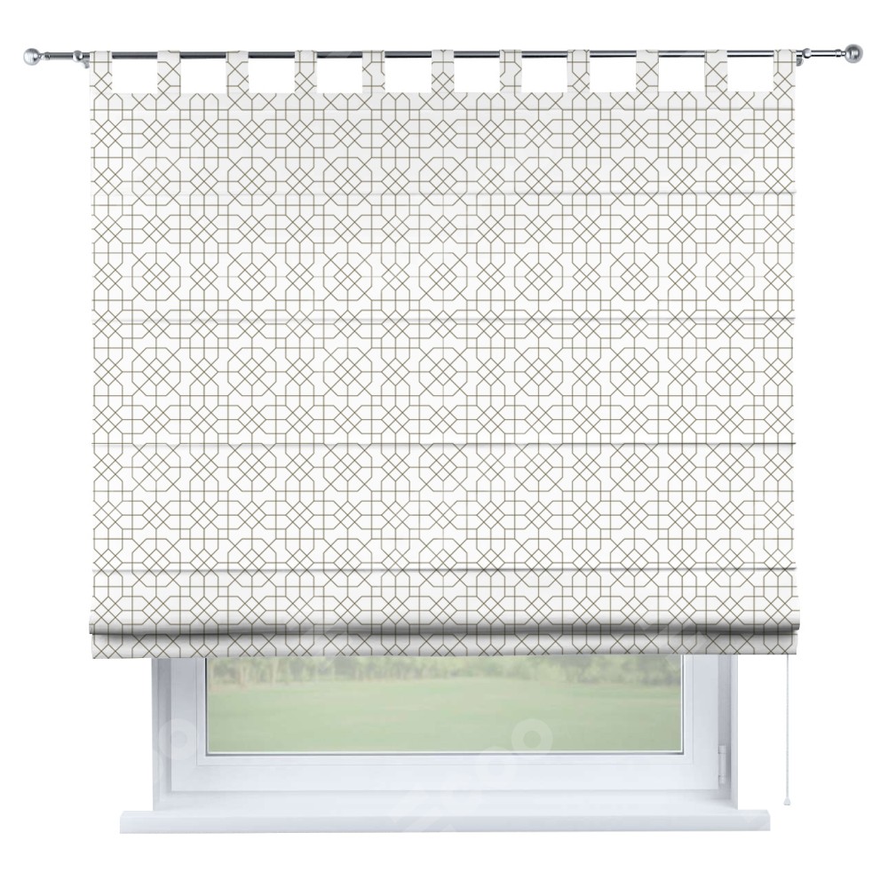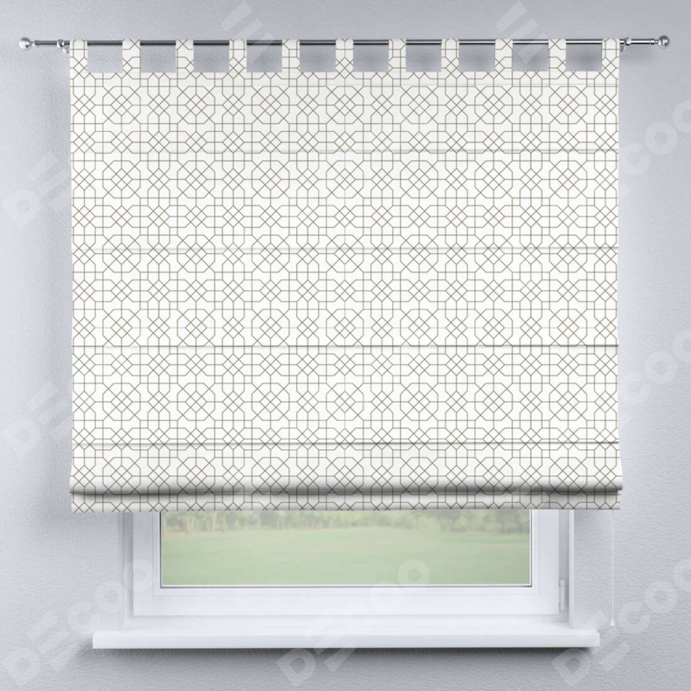 Римская штора производителя «Cortin», используется для проёма, пошита из ткани блэкаут с нанесением сублимационной печати «Орнамент из тонких линий». Данная модель пошита на петлях, комплектуется на выбор круглым карнизом и подходит для монтажа на стену. Римская штора на петлях имеет простую систему регулировки высоты, отличительным преимуществом данной модели является простой способ монтажа. Достаточно повесить ее на трубу и штора готова!