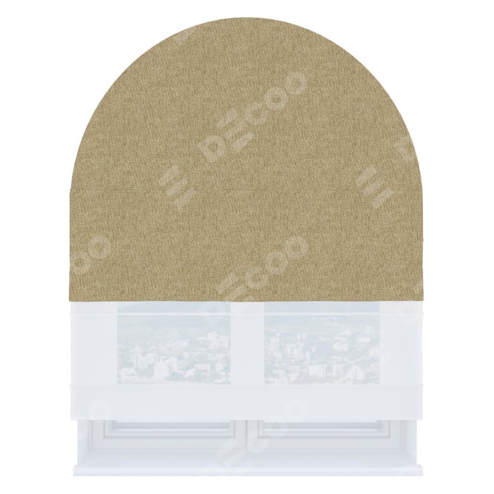 Римская штора день-ночь производителя «Cortin», используется для арочного проёма, пошита из двух полотен, с лицевой стороны стиф димаут бежевый артикул 18083, вторая ткань тюль (по стандарту комплектуется тюль белого цвета артикул V-01). Штора шьётся по индивидуальным размерам, для данного типа римской шторы возможная ширина от 60 до 300 см. Удобное управление каждой шторой отдельно.