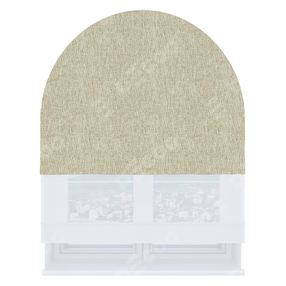 Римская штора день-ночь производителя «Cortin», используется для арочного проёма, пошита из двух полотен, с лицевой стороны стиф димаут светло-бежевый артикул 18084, вторая ткань тюль (по стандарту комплектуется тюль белого цвета артикул V-01). Штора шьётся по индивидуальным размерам, для данного типа римской шторы возможная ширина от 60 до 300 см. Удобное управление каждой шторой отдельно.