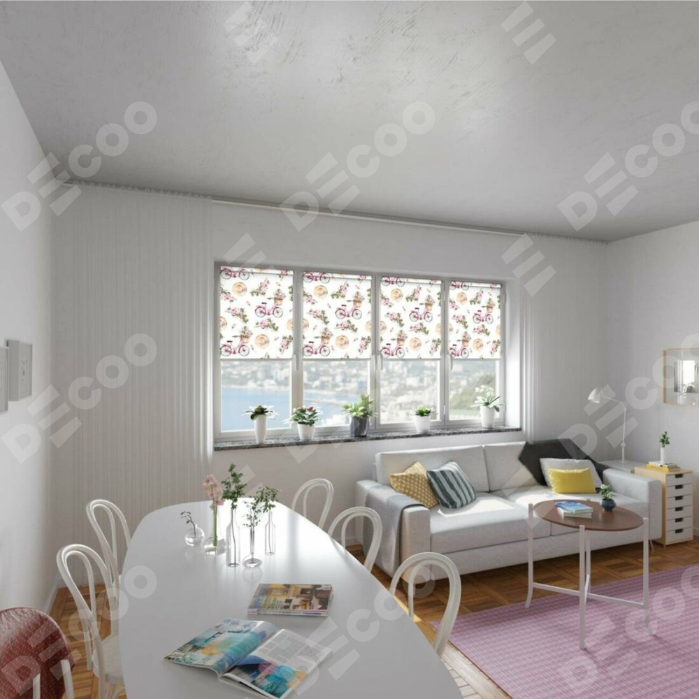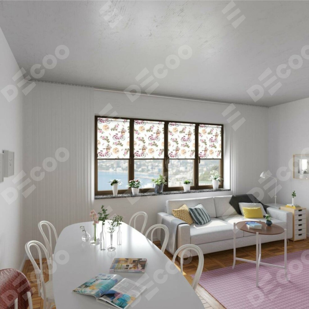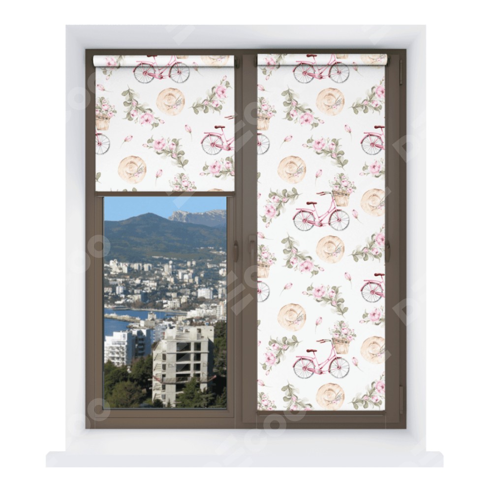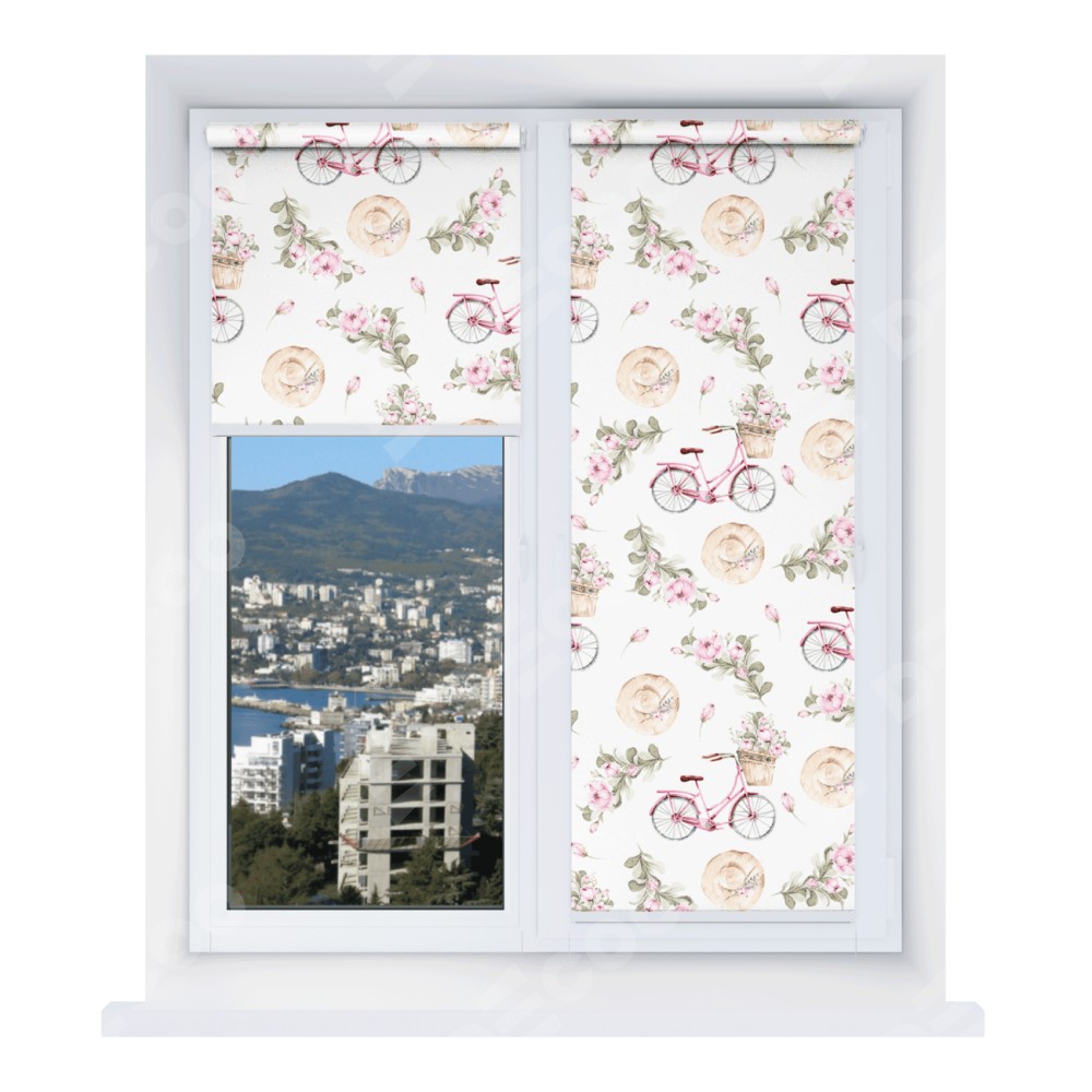 Рулонная штора Мини с принтом Розовый велосипед отлично подойдёт для интерьера: коттедж, для любого интерьера и для балкона.