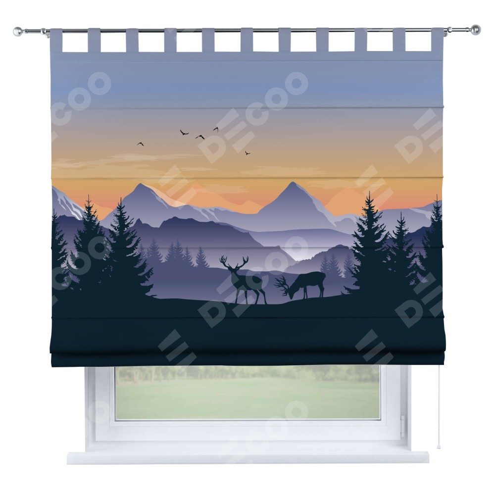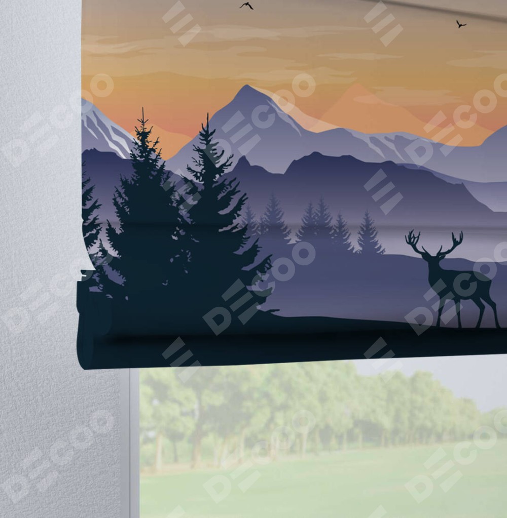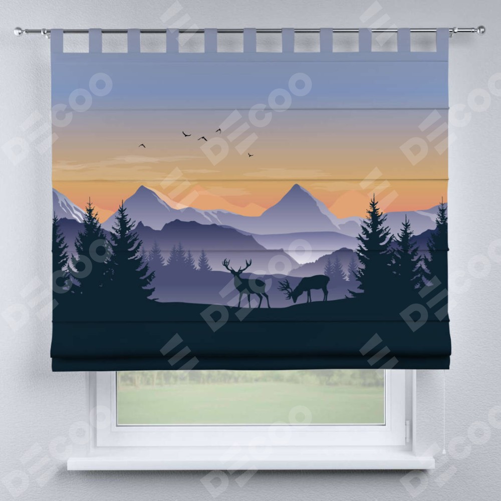 Римская штора на петлях «Закат в горах» отлично подойдёт для интерьера: в кухню, в детскую и на балкон.
