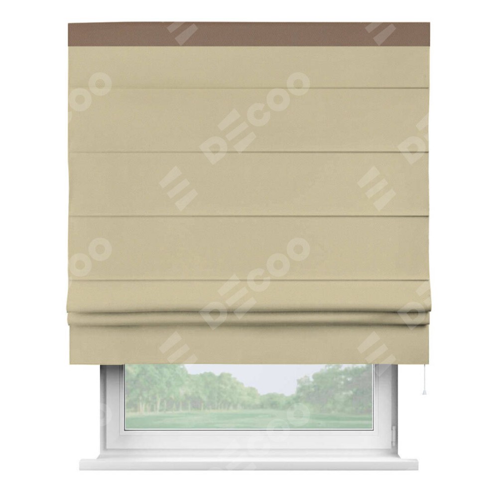 Римская штора производителя «Cortin», используется для проёма, пошита из ткани блэкаут однотонный кофейный, артикул ткани 13130. Отделка шторы кантом «Кинг», ткань для канта используется из блэкаута однотонного разной расцветки на выбор. Имеет универсальный механизм и подходит для монтажа: на потолок, на стену и в нишу.