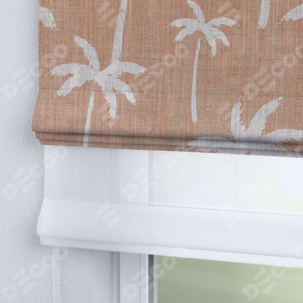 Римская штора «Кортин» день-ночь «Пальмы на закате» отлично подойдёт для интерьера: в спальню, в кухню и на балкон.